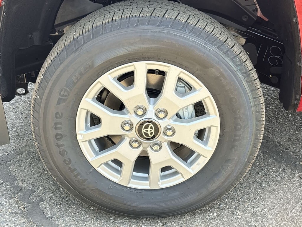 SR5 Upgrade Heat (JBL Premium Audio), 4WD, 3.583 Axle Ratio, 4-Wheel Disc Brakes, 6 Speakers, ABS brakes, Air Conditioning, All Weather Floor Liners (TMS), Alloy wheels, AM/FM radio: SiriusXM, Anti-whiplash front head restraints, Apple CarPlay/Android Auto, Auto High-beam Headlights, Auto-dimming Rear-View mirror, Bed Mat (TMS), Black Overlay & Drk Illum Logo Pkg (TMS), Brake assist, Bumpers: body-color, Driver door bin, Dual front impact airbags, Dual front side impact airbags, Electronic Stability Control, Emergency communication system: Safety Connect (1-year trial), Exterior Parking Camera Rear, Fabric Seat Trim, Four wheel independent suspension, Front anti-roll bar, Front Bucket Seats, Front Center Armrest, Front fog lights, Front reading lights, Fully automatic headlights, Heated door mirrors, Illuminated entry, Knee airbag, Low tire pressure warning, Occupant sensing airbag, Outside temperature display, Overhead airbag, Overhead console, Panic alarm, Passenger door bin, Power door mirrors, Power steering, Power windows, Radio: 8 Toyota Audio Multimedia, Rear step bumper, Rear window defroster, Remote keyless entry, Speed control, Speed-sensing steering, Split folding rear seat, Steering wheel mounted audio controls, Tachometer, Telescoping steering wheel, Tilt steering wheel, Traction control, Trip computer, Variably intermittent wipers, Wheel Locks (TMS), and Wheels: 17 Styled Alloy.