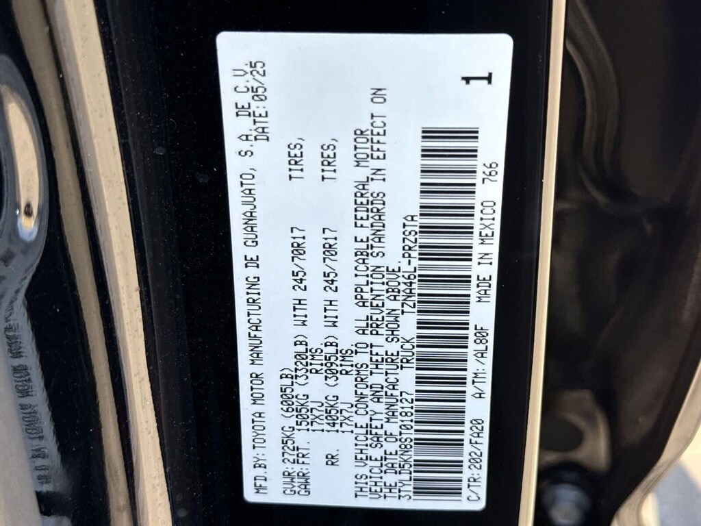 SR Upgrade Package (Blind Spot Monitor and Smart Key w/Digital Key Technology), 4WD, 3.583 Axle Ratio, 4-Wheel Disc Brakes, 6 Speakers, ABS brakes, Air Conditioning, All Weather Floor Liners (TMS), Alloy wheels, AM/FM radio: SiriusXM, Anti-whiplash front head restraints, Apple CarPlay/Android Auto, Auto High-beam Headlights, Brake assist, Bumpers: body-color, Driver door bin, Dual front impact airbags, Dual front side impact airbags, Electronic Stability Control, Emergency communication system: Safety Connect (1-year trial), Exterior Parking Camera Rear, Fabric Seat Trim, Front anti-roll bar, Front Bucket Seats, Front Center Armrest, Front reading lights, Front wheel independent suspension, Fully automatic headlights, Heated door mirrors, Illuminated entry, Illuminated Front Emblem Dark Chrome (TMS), Knee airbag, Low tire pressure warning, Multimedia Screen Protector - Glass (TMS), Occupant sensing airbag, Outside temperature display, Overhead airbag, Overhead console, Passenger door bin, Power door mirrors, Power steering, Power windows, Radio: 8 Toyota Audio Multimedia, Rear step bumper, Rear window defroster, Remote keyless entry, Speed control, Speed-sensing steering, Split folding rear seat, Steering wheel mounted audio controls, Tachometer, Telescoping steering wheel, Tilt steering wheel, Traction control, Trip computer, Variably intermittent wipers, and Wheels: 17 Styled Alloy.