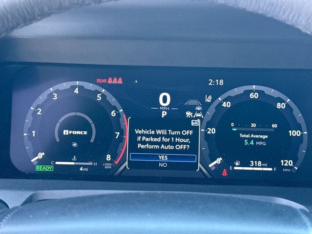 TRD Off Road Package, 2.4L I4 PDI Hybrid Turbocharged DOHC 16V, 18 Alloy Wheels, 3.583 Axle Ratio, 4-Wheel Disc Brakes, 6 Speakers, ABS brakes, Air Conditioning, All Weather Floor Liners (TMS), Alloy wheels, AM/FM radio: SiriusXM, Anti-whiplash front head restraints, Apple CarPlay/Android Auto, Auto High-beam Headlights, Auto-dimming Rear-View mirror, Automatic temperature control, Bed Scene Lighting (TMS), Black Tailgate Insert (TMS), Brake assist, Bumpers: body-color, Driver door bin, Driver vanity mirror, Dual front impact airbags, Dual front side impact airbags, Electronic Stability Control, Emergency communication system: Safety Connect (1-year trial), Exterior Parking Camera Rear, Fabric Seat Trim, Four wheel independent suspension, Front anti-roll bar, Front Bucket Seats, Front Center Armrest, Front fog lights, Front reading lights, Fully automatic headlights, Heated door mirrors, Heated Front Seats, Illuminated entry, Illuminated Front Emblem Dark Chrome (TMS), JBL Premium Audio, Knee airbag, Leather Shift Knob, Leather steering wheel, Low tire pressure warning, Navigation system: Drive Connect (1 year trial) includes Cloud Navigation with real time traffic and Google POI, Occupant sensing airbag, Outside temperature display, Overhead airbag, Overhead console, Panic alarm, Passenger door bin, Passenger vanity mirror, Power door mirrors, Power steering, Power windows, Predator Step (TMS), Radio: 14 Toyota Audio Multimedia, Radio: 8 Toyota Audio Multimedia, Radio: Premium Audio w/14 Display, Rear step bumper, Rear window defroster, Remote keyless entry, Security system, SofTex Seat Trim, Speed control, Speed-sensing steering, Split folding rear seat, Spray-On Bed Liner (TMS), Steering wheel mounted audio controls, Tachometer, Telescoping steering wheel, Tilt steering wheel, Traction control, Trip computer, Turn signal indicator mirrors, Variably intermittent wipers, and White Rigid Fog Lights Upgrade (TMS)