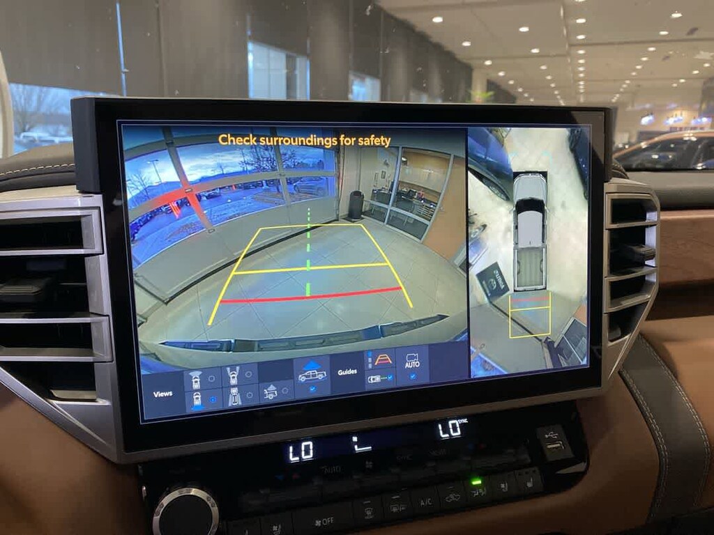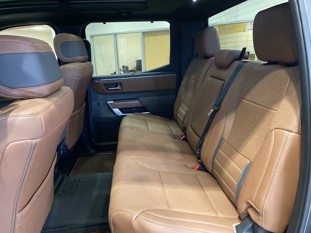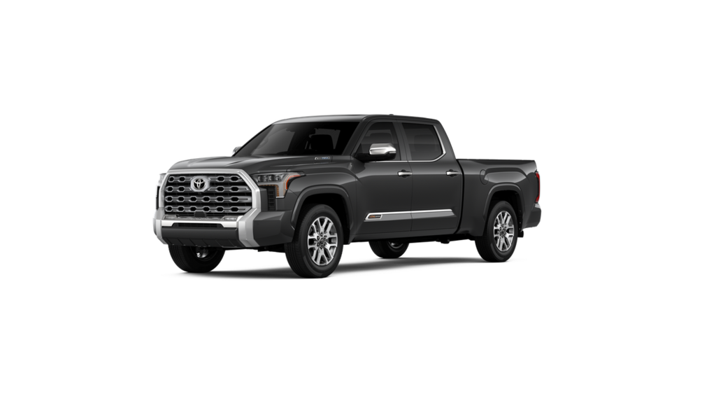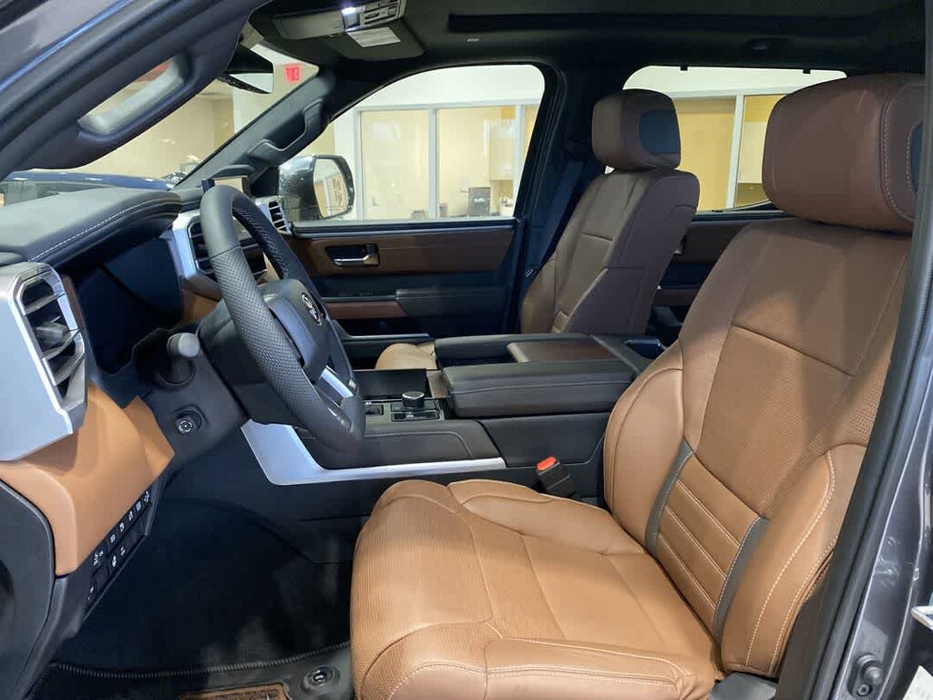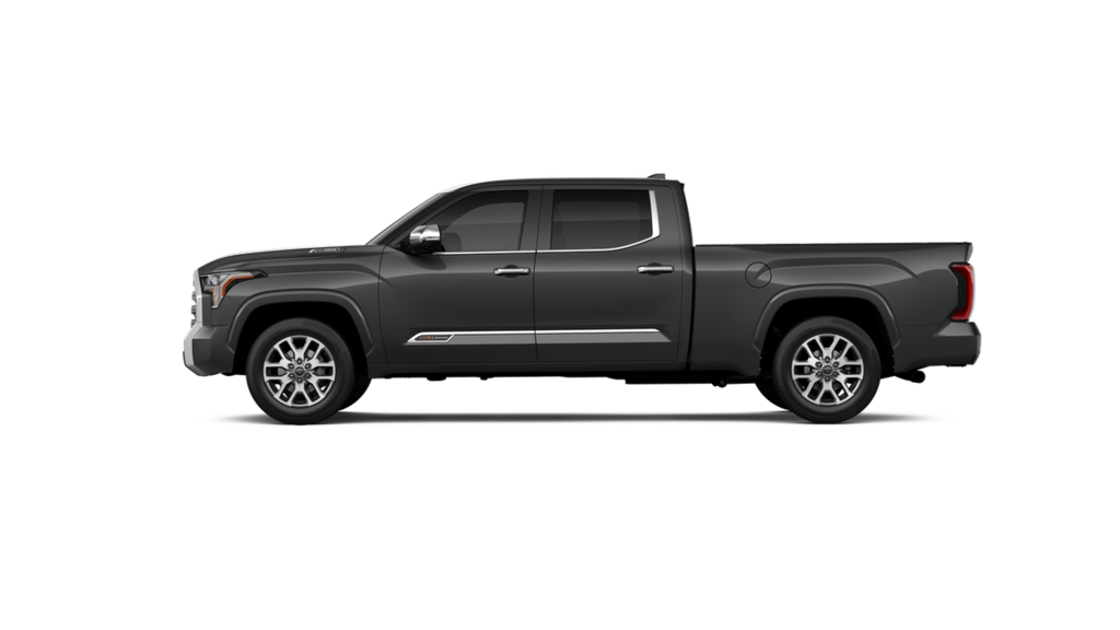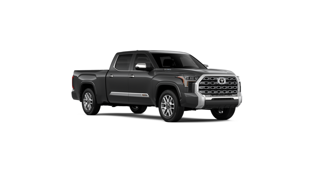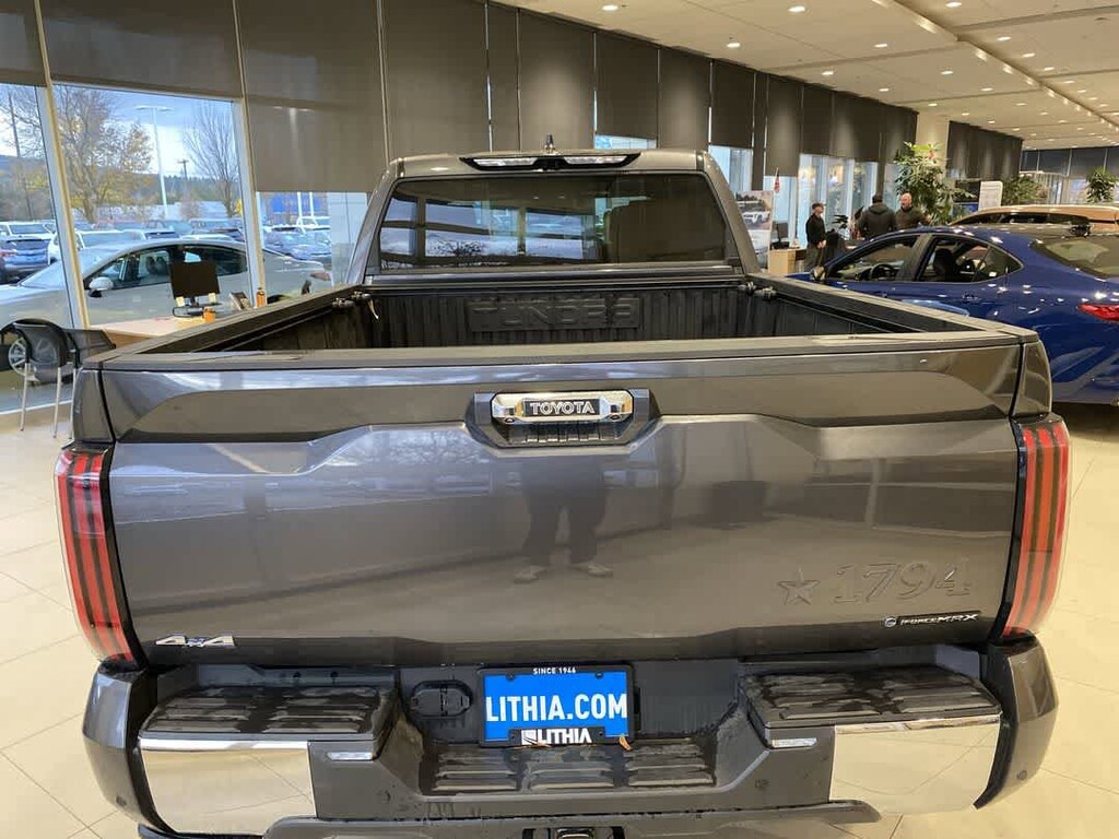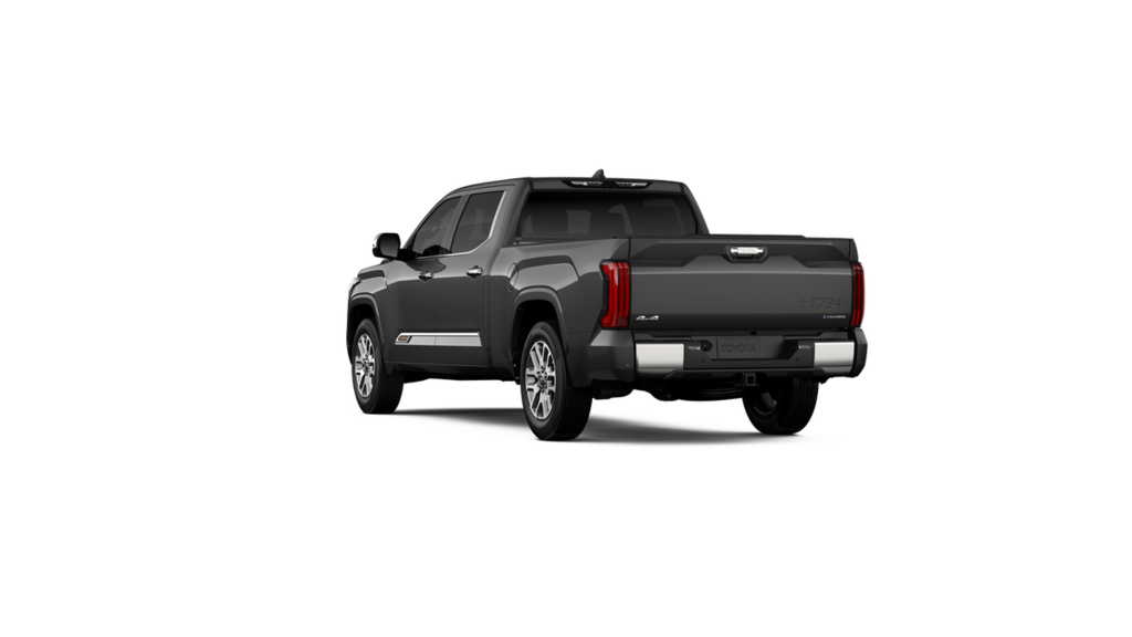 POWER RUNNING BOARDS power deck step and step cover, 10 COLOR HEAD-UP DISPLAY (HUD) speedometer, navigation and hybrid system indicator, NON-SKID SPRAY-ON BED LINER (TMS), CHROME PLATED HEATED POWER FOLDING OUTSIDE MIRRORS Blind Spot Monitor, Panoramic View Back Monitor, Multi-Terrain Back Monitor. Toyota 1794 Edition Hybrid with Magnetic Gray Metallic exterior and SADDLE TAN interior features a V6 Cylinder Engine with 437 HP at 5200 RPM*. Approx. Original Base Sticker Price: $76,500*.
