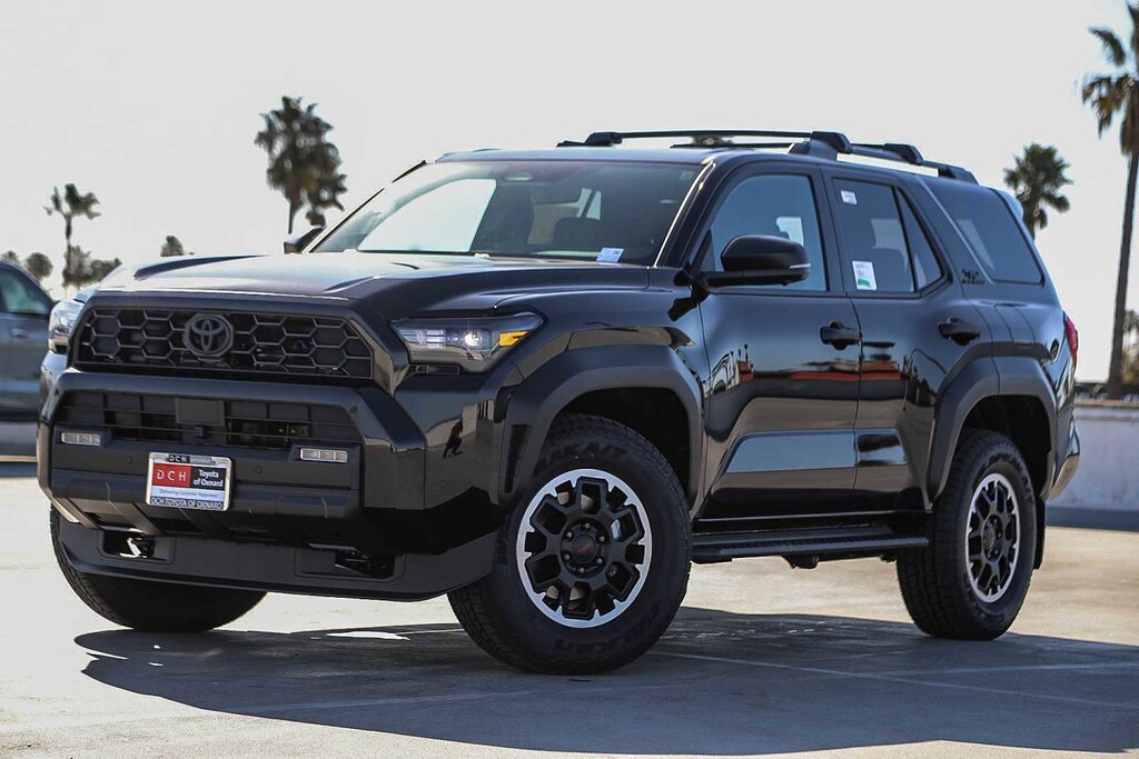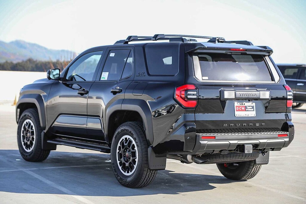 - Black honeycomb-style grille, mirror caps, door handles and overfenders; color-keyed rear spoiler; black "trd off road" and "4runner" badges.