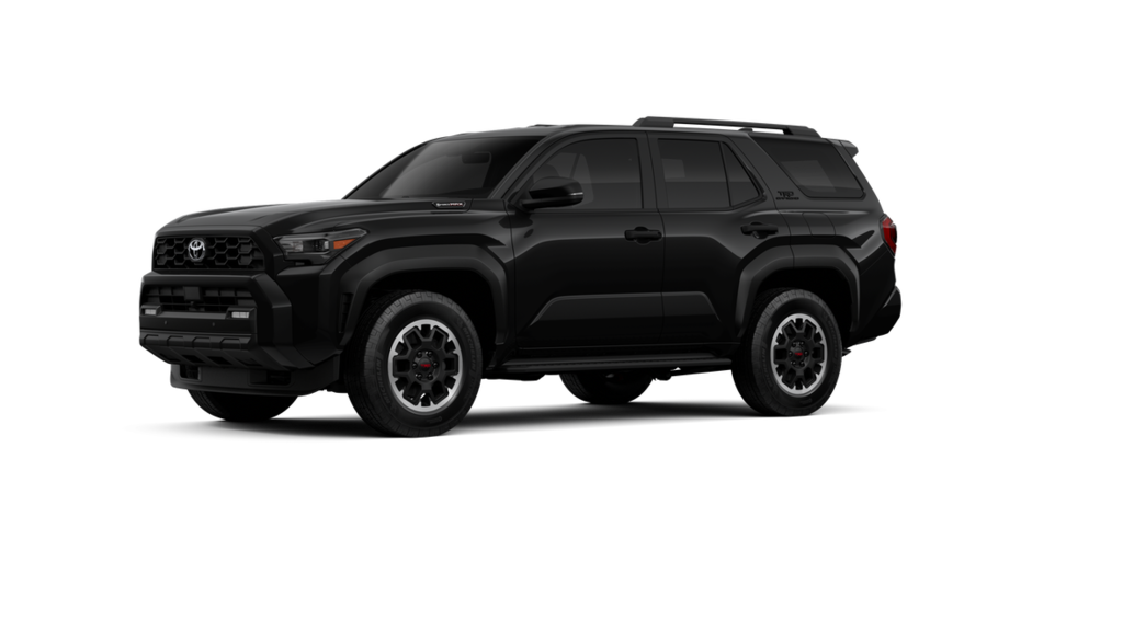 - Black honeycomb-style grille, mirror caps, door handles and overfenders; color-keyed rear spoiler; black "trd off road" and "4runner" badges.