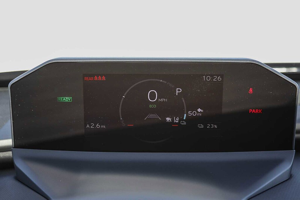 - Top-mount multi-information display (mid) with indicators and 7-in. Lcd display with speedometer, charge meter, power output meter, drive mode indicators, instrumentation and customizable settings, odometer, tripmeters, clock, outside temperature, rear passenger seatbelt indicators, fuel economy information, trip timer, charging information and settings, and warning messages.