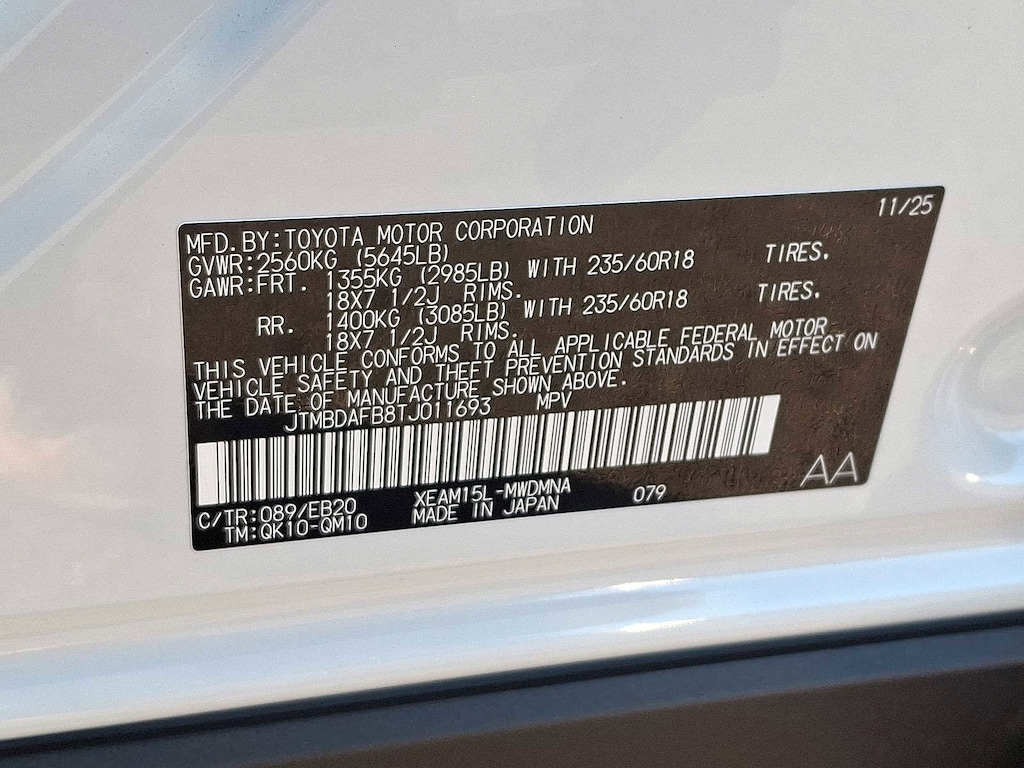 - JTMBDAFB8TJ011693