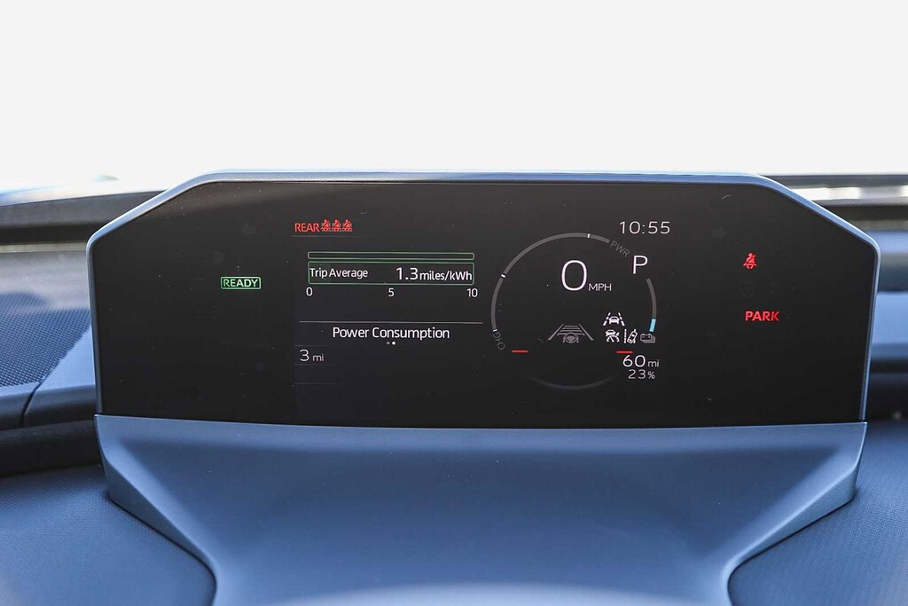 - Top-mount multi-information display (mid) with indicators and 7-in. Lcd display with speedometer, charge meter, power output meter, drive mode indicators, instrumentation and customizable settings, odometer, tripmeters, clock, outside temperature, rear passenger seatbelt indicators, fuel economy information, trip timer, charging information and settings, and warning messages.