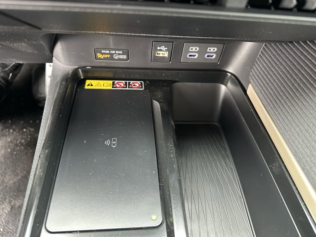 - Five USB ports: one USB-A media port and two USB-C charging ports up front, with one USB-A and one USB-C charging port in the rear