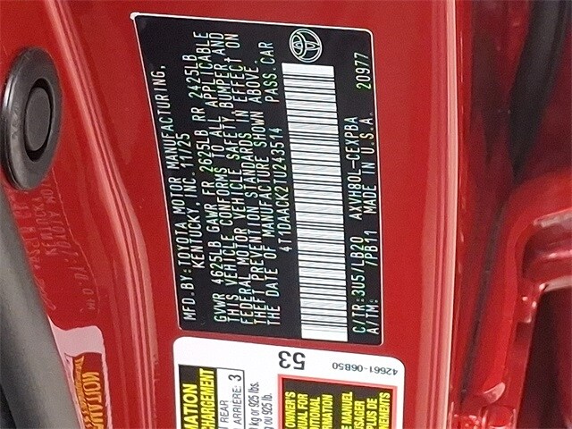 03u5red 2026 Toyota Camry XSE FWD eCVT 2.5L 4-Cylinder 16V DOHC Lb20black Leather.