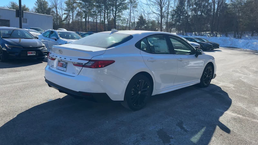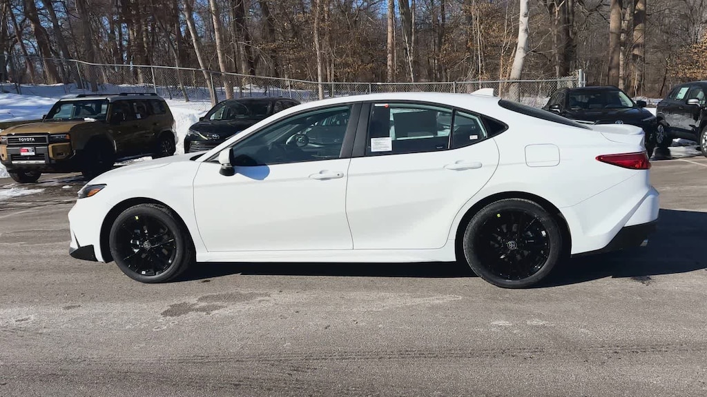 Ice Cap 2026 Toyota Camry SE AWD eCVT 2.5L 4-Cylinder 16V DOHC Camry SE, 4D Sedan, 2.5L 4-Cylinder 16V DOHC, eCVT, AWD, Ice Cap, Black w/SofTex and Fabric Seat Trim, ABS brakes, Active Cruise Control, Alloy wheels, Auto-Dimming Rearview Mirror with HomeLink, Cold Weather Package, Convenience Package, Electronic Stability Control, Front dual zone A/C, Heated door mirrors, Heated Front Seats, Heated Leather Steering Wheel with Paddle Shifters, Illuminated entry, Low tire pressure warning, Power Tilt/Slide Moonroof, Radio: 12.3 Toyota Multimedia Audio, Remote keyless entry, Smart Key System on Front Doors, Traction control.