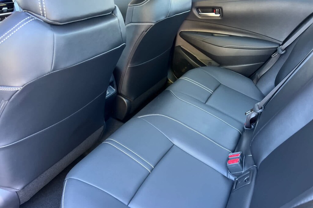 And so far, I like it. I was able to get a 2022 with leather seats, heated front, adjustable driver seat (lumbar support), stitching on the steering wheel and weather mats. I did notice a little bit of a pick-up in power mode on the highway, but it's not a race car. Gas mileage is great. The car had 571 miles on it when it gave me a warning of low fuel. The dash read 29 miles left until empty. I gassed up. The driver seat is comfortable with the options for adjustments. When you press the start button, the car is quiet once on. The car was preset for automatic door unlocking when you shut the car off. I disabled that on the touch screen for safety reasons. I want to be the one to unlock the doors. I keep some armor-all wipes in the door because the leather can get a little scuffed up looking. One time when I shut the car off, the dash showed, "window open." Cool. I think it's pretty fun to drive. IMO, the car needs better visibility. The touch screen should be lower and I removed the rear head rests. (They are easy to put on and take off). I don't often have rear passengers. The trunk is a little small. I haven't signed up for Toyota Connect yet (SOS button, Wi-fi, drive history, theft tracker). As far as value, I bought at a BAD time (during the chip shortage) so I did pay over sticker. However, I needed a reliable and safe car, and I owned a Corolla in the past - this one fit the bill. No more belts to change either. So far, So Good!… - 5.0