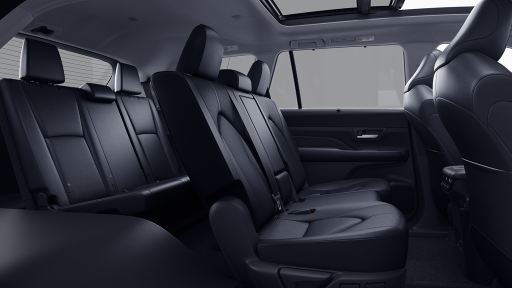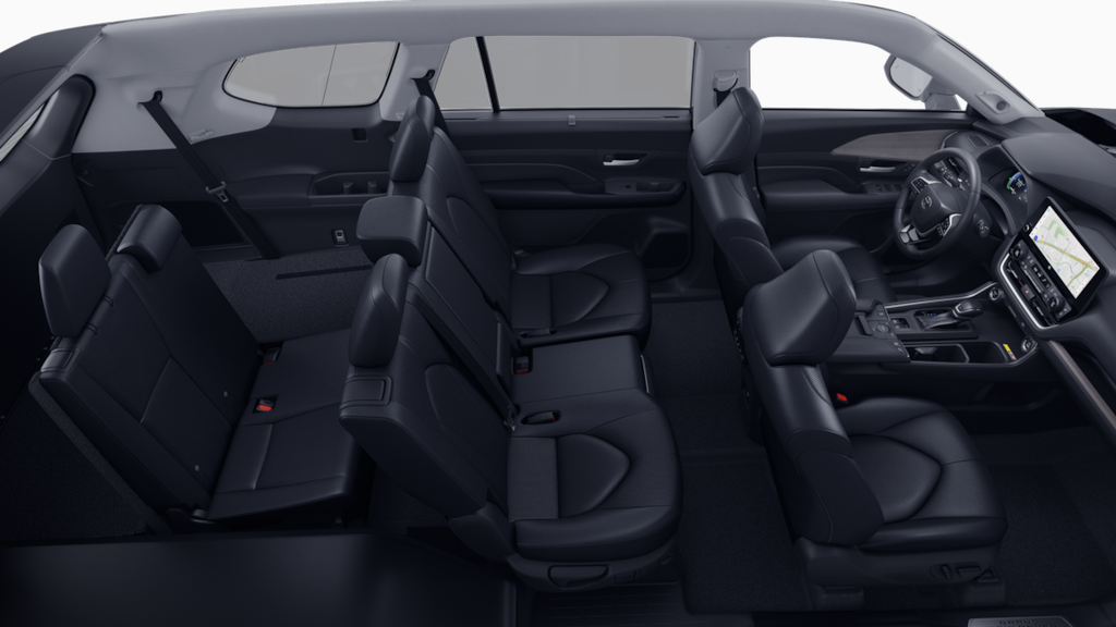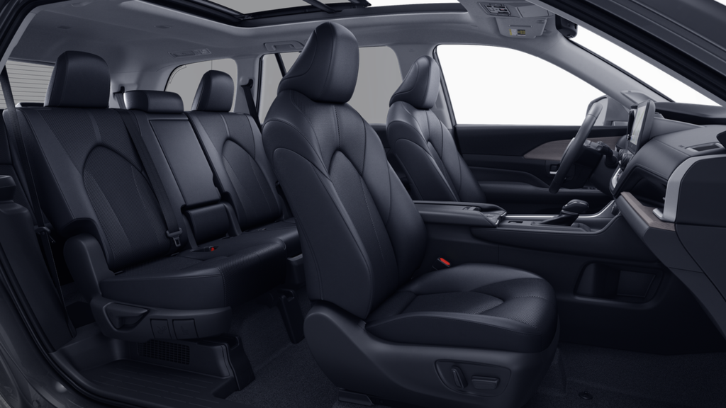 - 7-passenger seating with second-row fold-down captain's chairs and fold-down inboard armrests, adjustable headrests and two cup holders mounted on the floor; and 60/40 split, fold-down third-row seats with sliding headrests and recline function.