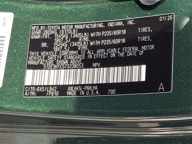 06x5/Green 2026 Toyota Sienna Platinum 7 Passenger AWD CVT 2.5L I4 AWD.