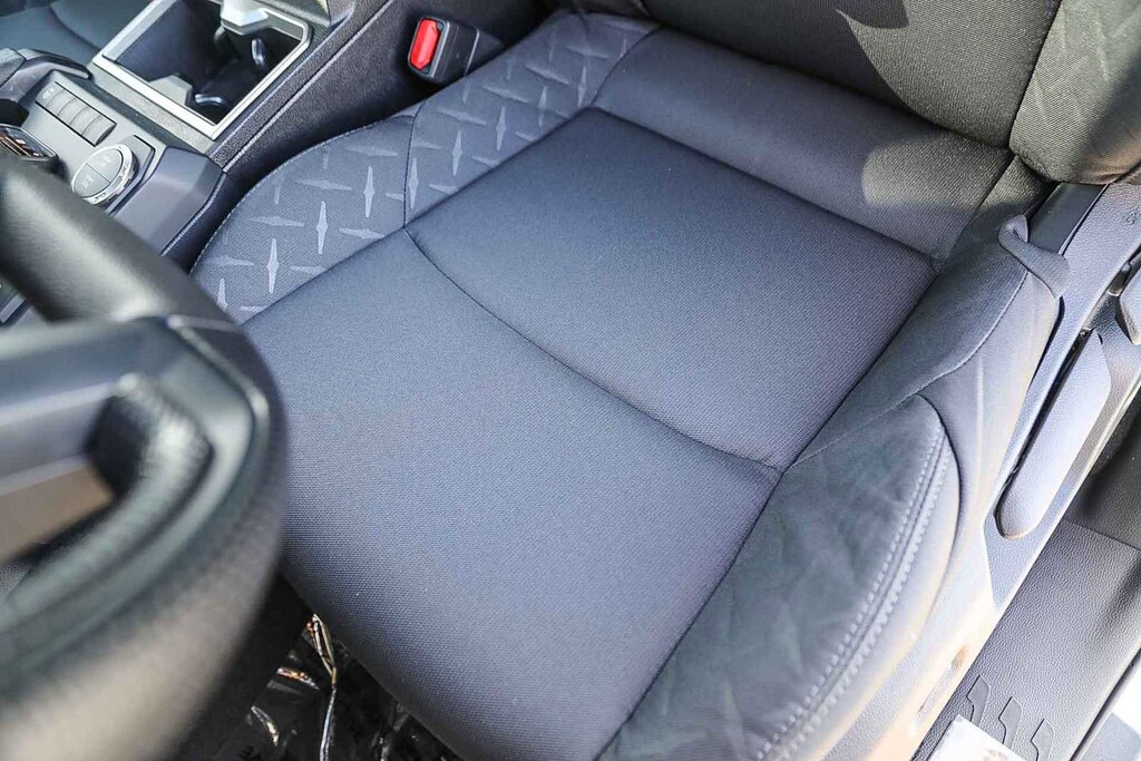 - Fabric-trimmed seats; 6-way manually adjustable driver and front passenger seats with 2-way power-adjustable lumbar support on driver's seat only.
