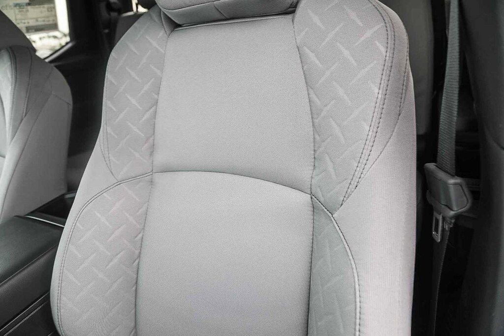 - Fabric-trimmed seats; 6-way manually adjustable driver and front passenger seats with 2-way power-adjustable lumbar support on driver's seat only.