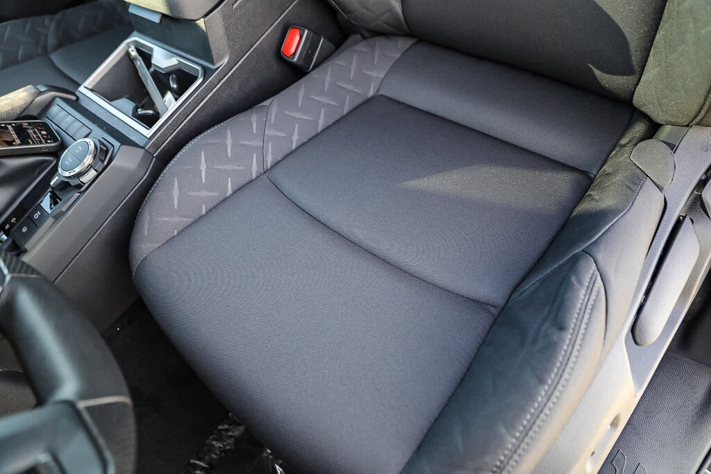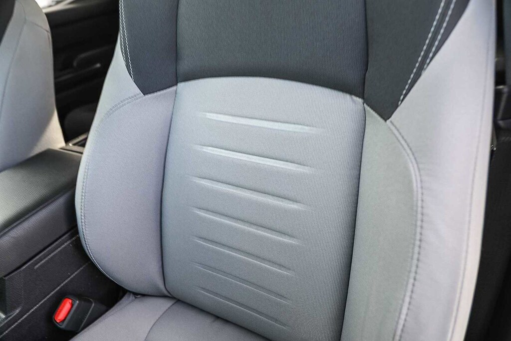 - Fabric-trimmed seats; 6-way manually adjustable driver and front passenger seats with 2-way power-adjustable lumbar support on driver's seat only.