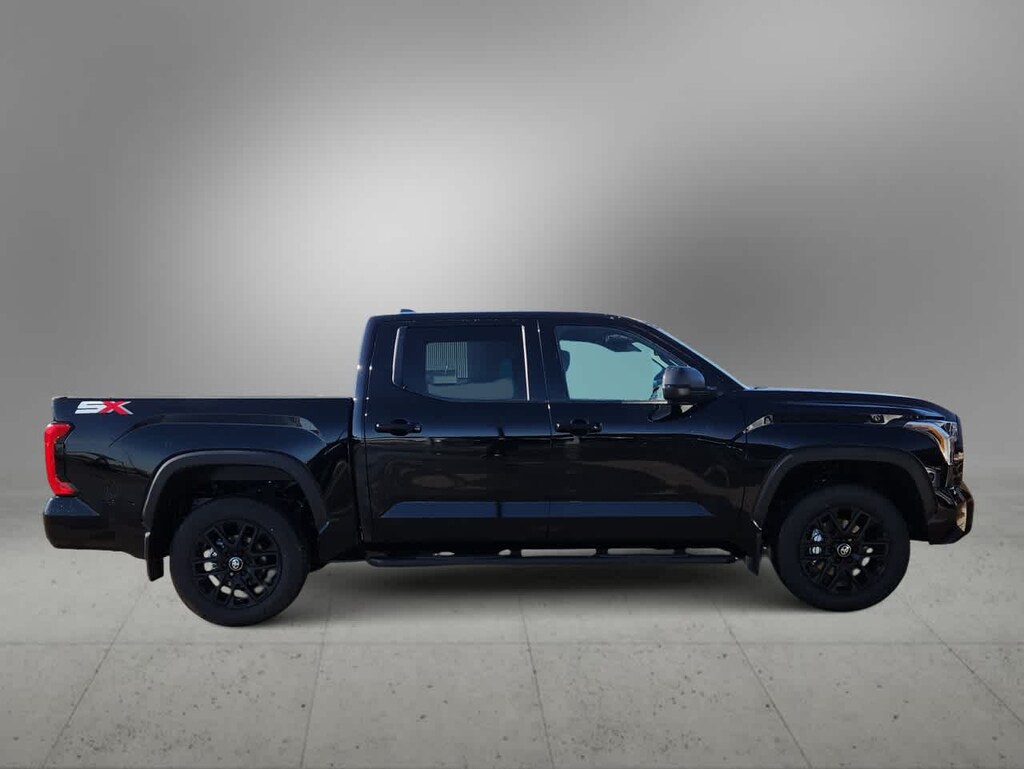 SX PACKAGE color keyed door handles, color keyed bumpers, color keyed tailgate spoiler, black overfenders, black 4x4 tailgate badge, SR5 grille, Tundra door badge removed, black interior trim and SX decal, Wheels: 20 TRD Sport Alloy, Tires: 265/60R20, DUAL-STEP RUNNING BOARD - BLACK (TMS), NON-SKID SPRAY-ON BED LINER (TMS). Toyota SR5 with Midnight Black Metallic exterior and BLACK interior features a V6 Cylinder Engine with 389 HP at 5200 RPM*.