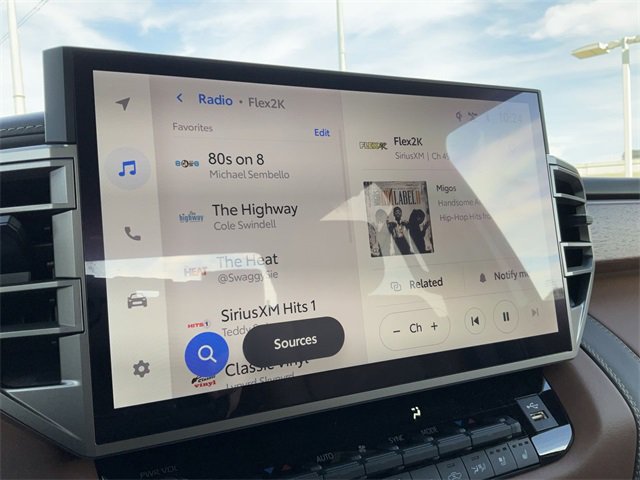 - Leather-wrapped power tilt/telescopic steering wheel with phone, audio, display/infotainment, and Driver Assist controls