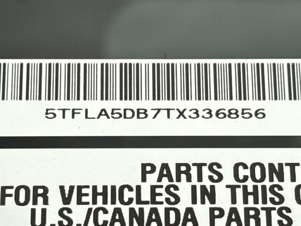 SR5 Convenience Package (Blind Spot Monitor with Lane Change Assist and Parking Support Alert/Brake), 4WD, Black Cloth, 18 Alloy Wheels, 3.31 Axle Ratio, 4-Way Manual Front Seats, 4-Wheel Disc Brakes, 9 Speakers, ABS brakes, Air Conditioning, All Weather Floor Liners, Alloy wheels, AM/FM radio: SiriusXM, Apple CarPlay/Android Auto, Auto High-beam Headlights, Automatic temperature control, Black Emblem Overlay, Blind Spot Monitor, Brake assist, Bumpers: body-color, Delay-off headlights, Driver door bin, Driver vanity mirror, Dual front impact airbags, Dual front side impact airbags, Electronic Stability Control, Emergency communication system: Safety Connect (up to 10-year trial subscription), Exterior Parking Camera Rear, Fabric Seat Trim (FB), Front anti-roll bar, Front Bucket Seats, Front Center Armrest, Front fog lights, Front reading lights, Front wheel independent suspension, Fully automatic headlights, Heated door mirrors, Heated Power Black Outside Mirrors, Illuminated entry, Knee airbag, Leather Seat Trim, Low tire pressure warning, Occupant sensing airbag, Outside temperature display, Overhead airbag, Overhead console, Panic alarm, Passenger door bin, Passenger vanity mirror, Power door mirrors, Power driver seat, Power steering, Power windows, Radio data system, Radio: Audio Multimedia System, Radio: Audio Plus, Rear reading lights, Rear step bumper, Rear window defroster, Remote keyless entry, Safety Connect, Security system, Speed control, Speed-sensing steering, Split folding rear seat, Steering wheel mounted audio controls, Tachometer, Telescoping steering wheel, Tilt steering wheel, Traction control, TRD Cast Aluminum Running Board, Tri-Fold Tonneau Cover, Trip computer, Variably intermittent wipers, and Voltmeter.