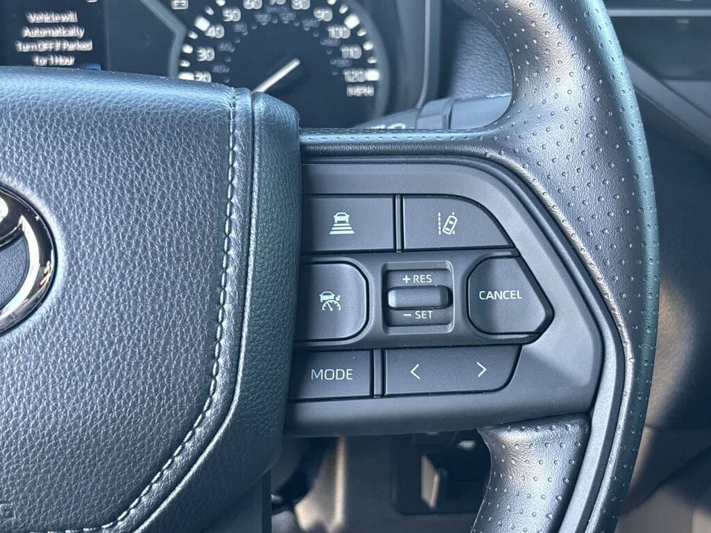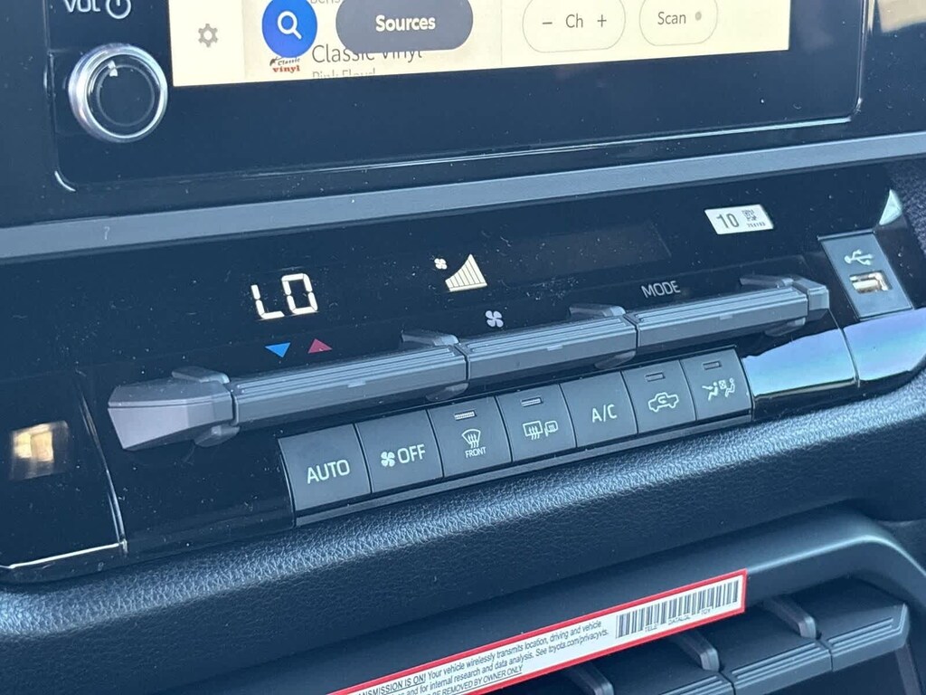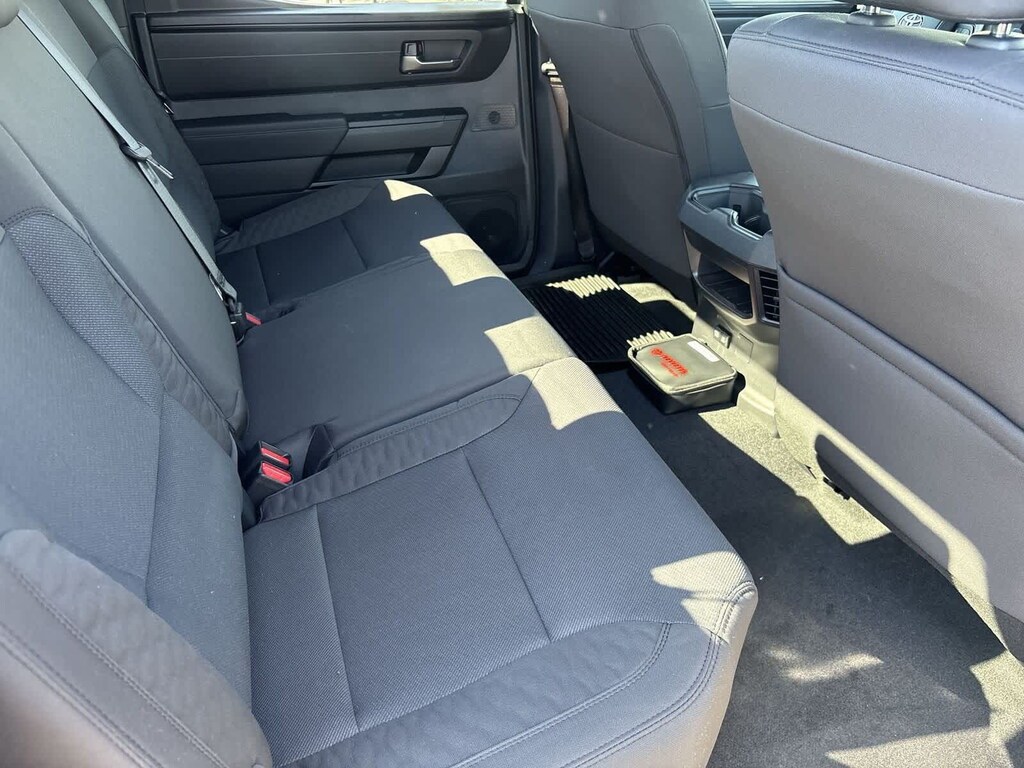 SX Package (Fabric Seat Trim (FA) and Wheels: 20 x 8J Matte Black TRD Sport Style), Fa21black Cloth, 18 x 7.5J Alloy Wheels, 3.31 Axle Ratio, 4-Wheel Disc Brakes, 9 Speakers, ABS brakes, Air Conditioning, All Weather Floor Liners, Alloy wheels, AM/FM Radio, AM/FM radio: SiriusXM, Apple CarPlay/Android Auto, Auto High-beam Headlights, Automatic temperature control, Brake assist, Bumpers: body-color, Delay-off headlights, Driver door bin, Driver vanity mirror, Dual front impact airbags, Dual front side impact airbags, Electronic Stability Control, Emergency communication system: Safety Connect (up to 10-year trial subscription), Exterior Parking Camera Rear, Fabric Seat Trim, Front anti-roll bar, Front Bucket Seats, Front Center Armrest, Front fog lights, Front reading lights, Front wheel independent suspension, Fully automatic headlights, Heated door mirrors, Illuminated entry, Knee airbag, Low tire pressure warning, Occupant sensing airbag, Outside temperature display, Overhead airbag, Overhead console, Panic alarm, Passenger door bin, Passenger vanity mirror, Power door mirrors, Power driver seat, Power steering, Power windows, Predator Drop Step, Radio data system, Rear reading lights, Rear step bumper, Rear window defroster, Remote keyless entry, Security system, Smart USB Phone Cables, Speed control, Speed-sensing steering, Split folding rear seat, Steering wheel mounted audio controls, Tachometer, Telescoping steering wheel, Tilt steering wheel, Traction control, Trip computer, Variably intermittent wipers, and Voltmeter.