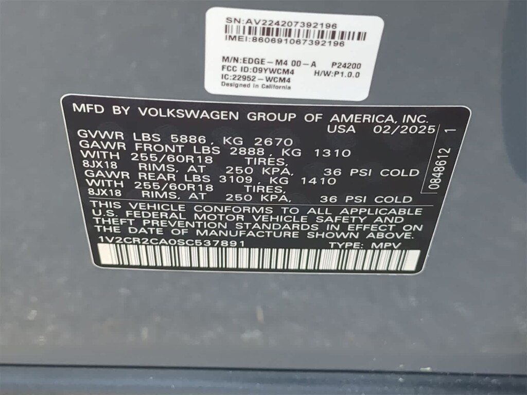 BUY WITH CONFIDENCE! WE LOVE TRADES! HASSLE FREE FINANCE PLANS FOR EVERYONE! PLEASE CALL TO ENSURE AVAILABLITY AS OUR INVENTORY CHANGES BY THE HOUR. Pure Gray 2025 Volkswagen Atlas AWD 8-Speed Automatic 2.0L TSI 18 black painted 5-spoke alloy wheels, 3rd row seats: split-bench, 4-Wheel Disc Brakes, 6 Speakers, ABS brakes, Air Conditioning, Alloy wheels, AM/FM radio: SiriusXM with 360L, Auto High-beam Headlights, Auto-dimming Rear-View mirror, Automatic temperature control, Brake assist, Bumpers: body-color, Compass, Delay-off headlights, Driver door bin, Driver vanity mirror, Dual front impact airbags, Dual front side impact airbags, Electronic Stability Control, Emergency communication system: VW Car-Net Safe & Secure 5-year, Exterior Parking Camera Rear, Four wheel independent suspension, four-wheel independent suspension, Front anti-roll bar, Front Bucket Seats, Front Center Armrest, Front dual zone A/C, Front fog lights, Front reading lights, Fully automatic headlights, heated and Actively ventilated front bucket seats, Heated door mirrors, Heated front seats, Heated steering wheel, Illuminated entry, Low tire pressure warning, MIB3 composition media radio, Occupant sensing airbag, Outside temperature display, Overhead airbag, Overhead console, Panic alarm, Passenger door bin, Passenger vanity mirror, perforated V-Tex leatherette seating surfaces, Power door mirrors, Power driver seat, Power Liftgate, Power moonroof: Panoramic, Power steering, Power windows, Radio data system, Rain sensing wipers, Rear air conditioning, Rear anti-roll bar, Rear reading lights, Rear seat center armrest, Rear window defroster, Rear window wiper, Remote keyless entry, Security system, Speed control, Speed-sensing steering, Split folding rear seat, Spoiler, Steering wheel mounted audio controls, Tachometer, Telescoping steering wheel, Tilt steering wheel, Traction control, Trip computer, Turn signal indicator mirrors, Variably intermittent wipers, Ventilated front seats.