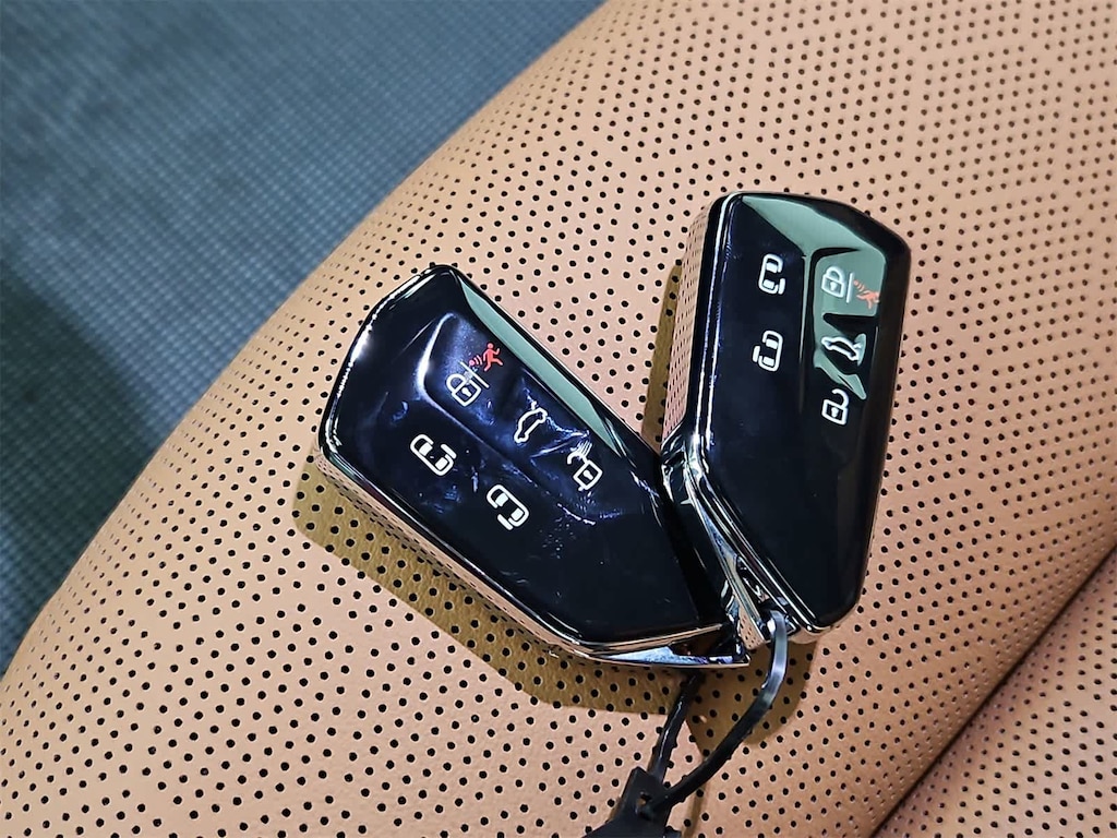 Nav System, Moonroof, Third Row Seat, Heated Seats, Rear Air, All Wheel Drive, Quad Bucket Seats, Aluminum Wheels, Hitch, PANORAMIC GLASS ROOF. Pro S Plus trim, Pomelo Yellow/Candy White exterior and Cognac w/ Yellow Piping interior.
