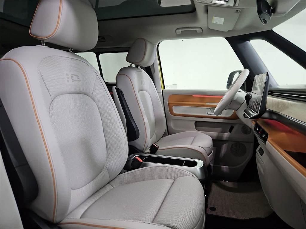PANORAMIC GLASS ROOF fixed glass roof w/electrochromic smart glass Volkswagen Pro S Plus with Pomelo Yellow/Candy White exterior and Mistral Gray w/ Clay Piping interior features a Electric Motor.