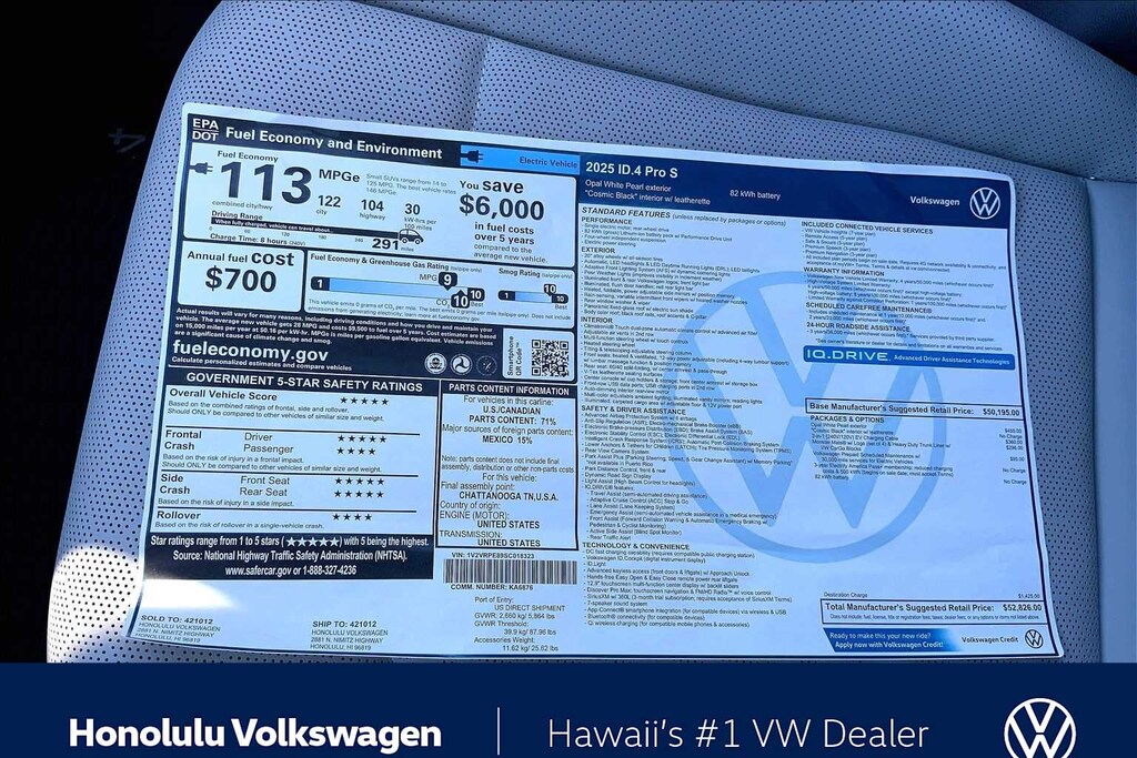 Get to know your Premier Honolulu Volkswagen Dealership, Selling New and Pre-Owned used vehicles in; Waianae, Kapolei, Ewa Beach, Waipahu, Waikele, Pearl City, Hawaii, Kai, Aiea, Mililani, Haleiwa, Honolulu, Waimanalo, Kailua, Kaneohe, Laie, Hauula, Kaaawa, Waialua, Wahiawa, Joint Base Pearl Harbor, Schofield Barracks, Pearl Harbor, Fort Schafter, Waikiki, Kaimuki, Marine Corp Base Hawaii, Kalihi, Makakilo, Oahu, https: //www.honoluluvw.com Plus government fees and taxes and $795 dealer document processing fee. MSRP includes destination and handling fee. Additional cost for dealer installed accessories. Price includes: $7500 - Customer Bonus. Exp. 02/02/2026