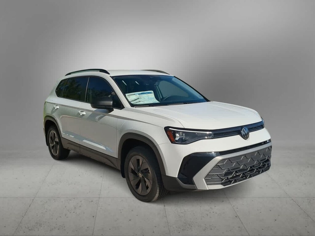 BUY WITH CONFIDENCE! WE LOVE TRADES! HASSLE FREE FINANCE PLANS FOR EVERYONE! PLEASE CALL TO ENSURE AVAILABLITY AS OUR INVENTORY CHANGES BY THE HOUR. Pure White 2025 Volkswagen Taos FWD 8-Speed Automatic with Tiptronic 1.5L I4 Turbocharged DOHC 16V LEV3-SULEV30 174hp 4-Wheel Disc Brakes, 6 Speakers, ABS brakes, Active Blind Spot Monitor, Air Conditioning, Alloy wheels, AM/FM radio, Auto High-beam Headlights, Brake assist, Bumpers: body-color, Cloth Seating Surfaces, Compass, Delay-off headlights, Driver door bin, Driver vanity mirror, Dual front impact airbags, Dual front side impact airbags, Electronic Stability Control, Emergency communication system: VW Car-Net Safe & Secure 5-year, Exterior Parking Camera Rear, Front anti-roll bar, Front Bucket Seats, Front Center Armrest, Front reading lights, Front Strut Rear Torsion Beam Suspension, Front wheel independent suspension, Fully automatic headlights, Heated steering wheel, Illuminated entry, Leather Shift Knob, Low tire pressure warning, Occupant sensing airbag, Outside temperature display, Overhead airbag, Overhead console, Panic alarm, Passenger door bin, Passenger vanity mirror, Power door mirrors, Power steering, Power windows, Radio data system, Radio: MIB3 Composition Color AM/FM, Rain sensing wipers, Rear anti-roll bar, Rear seat center armrest, Rear window defroster, Rear window wiper, Remote keyless entry, Speed control, Speed-sensing steering, Split folding rear seat, Spoiler, Steering wheel mounted audio controls, Tachometer, Telescoping steering wheel, Tilt steering wheel, Traction control, Trip computer, Variably intermittent wipers, Wheels: 17 Dark Silver Painted Alloy.