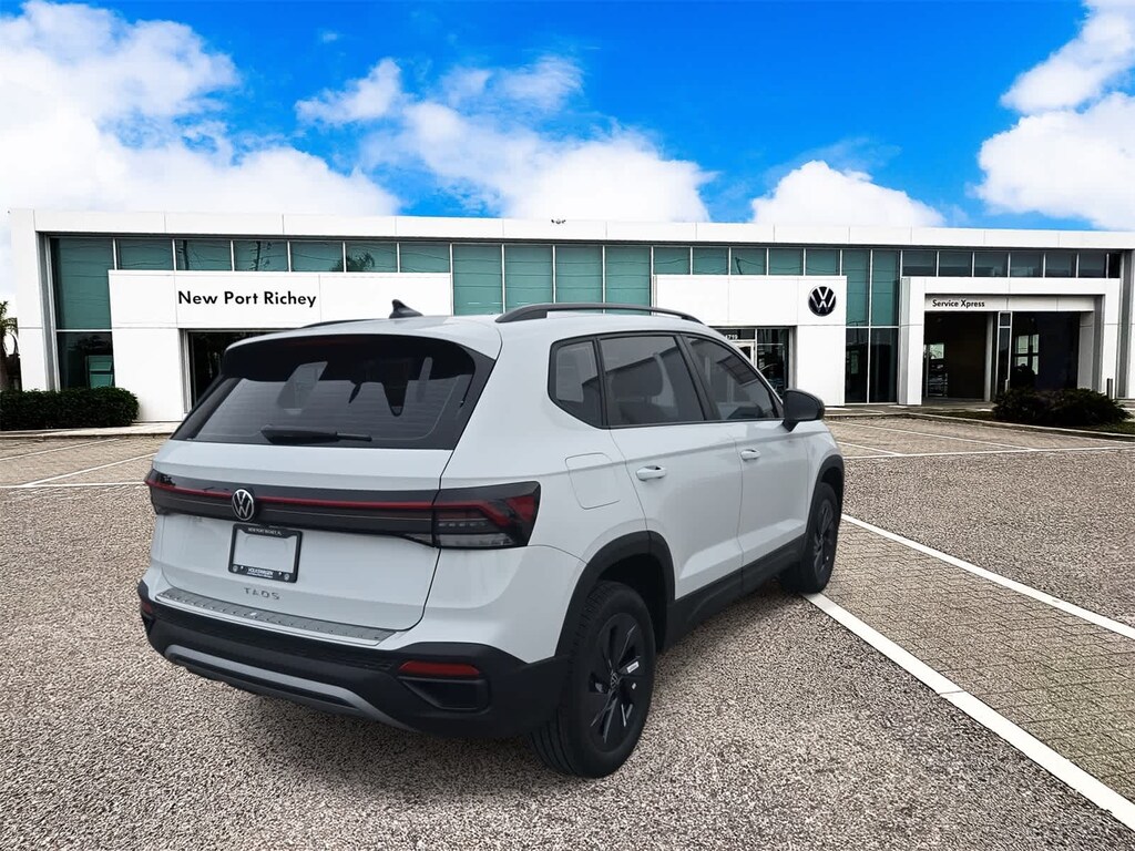 BUY WITH CONFIDENCE! WE LOVE TRADES! HASSLE FREE FINANCE PLANS FOR EVERYONE! PLEASE CALL TO ENSURE AVAILABLITY AS OUR INVENTORY CHANGES BY THE HOUR. Pure White 2025 Volkswagen Taos FWD 8-Speed Automatic with Tiptronic 1.5L I4 Turbocharged DOHC 16V LEV3-SULEV30 174hp 4-Wheel Disc Brakes, 6 Speakers, ABS brakes, Active Blind Spot Monitor, Air Conditioning, Alloy wheels, AM/FM radio, Auto High-beam Headlights, Brake assist, Bumpers: body-color, Cloth Seating Surfaces, Compass, Delay-off headlights, Driver door bin, Driver vanity mirror, Dual front impact airbags, Dual front side impact airbags, Electronic Stability Control, Emergency communication system: VW Car-Net Safe & Secure 5-year, Exterior Parking Camera Rear, Front anti-roll bar, Front Bucket Seats, Front Center Armrest, Front reading lights, Front Strut Rear Torsion Beam Suspension, Front wheel independent suspension, Fully automatic headlights, Heated steering wheel, Illuminated entry, Leather Shift Knob, Low tire pressure warning, Occupant sensing airbag, Outside temperature display, Overhead airbag, Overhead console, Panic alarm, Passenger door bin, Passenger vanity mirror, Power door mirrors, Power steering, Power windows, Radio data system, Radio: MIB3 Composition Color AM/FM, Rain sensing wipers, Rear anti-roll bar, Rear seat center armrest, Rear window defroster, Rear window wiper, Remote keyless entry, Speed control, Speed-sensing steering, Split folding rear seat, Spoiler, Steering wheel mounted audio controls, Tachometer, Telescoping steering wheel, Tilt steering wheel, Traction control, Trip computer, Variably intermittent wipers, Wheels: 17 Dark Silver Painted Alloy.