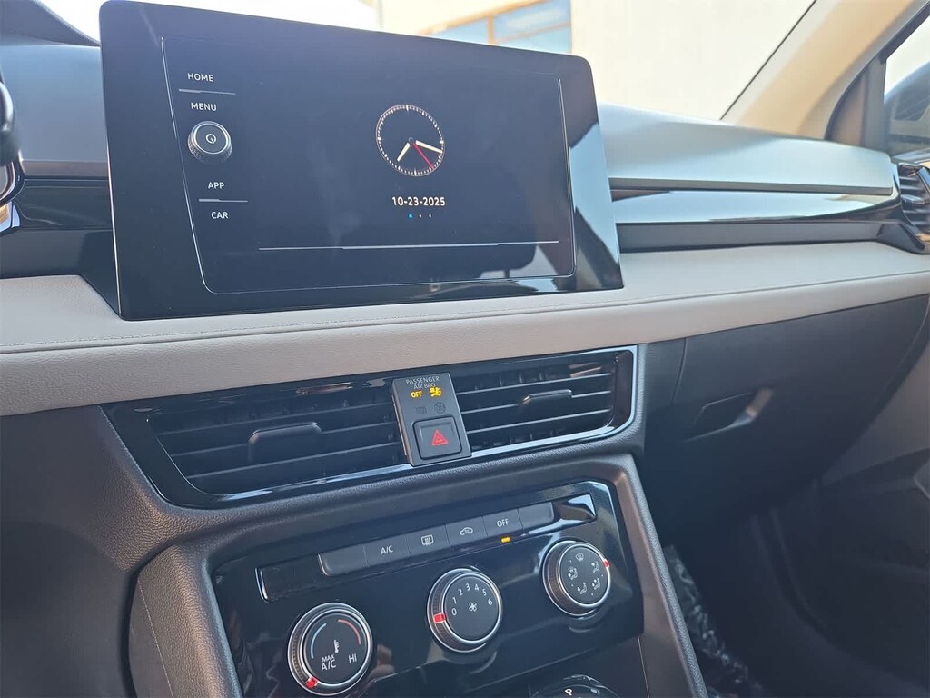 BUY WITH CONFIDENCE! WE LOVE TRADES! HASSLE FREE FINANCE PLANS FOR EVERYONE! PLEASE CALL TO ENSURE AVAILABLITY AS OUR INVENTORY CHANGES BY THE HOUR. Deep Black Pearl 2025 Volkswagen Taos FWD 8-Speed Automatic with Tiptronic 1.5L I4 Turbocharged DOHC 16V LEV3-SULEV30 174hp 4-Wheel Disc Brakes, 6 Speakers, ABS brakes, Active Blind Spot Monitor, Air Conditioning, Alloy wheels, AM/FM radio, Auto High-beam Headlights, Brake assist, Bumpers: body-color, Cloth Seating Surfaces, Compass, Delay-off headlights, Driver door bin, Driver vanity mirror, Dual front impact airbags, Dual front side impact airbags, Electronic Stability Control, Emergency communication system: VW Car-Net Safe & Secure 5-year, Exterior Parking Camera Rear, Front anti-roll bar, Front Bucket Seats, Front Center Armrest, Front reading lights, Front Strut Rear Torsion Beam Suspension, Front wheel independent suspension, Fully automatic headlights, Heated steering wheel, Illuminated entry, Leather Shift Knob, Low tire pressure warning, Occupant sensing airbag, Outside temperature display, Overhead airbag, Overhead console, Panic alarm, Passenger door bin, Passenger vanity mirror, Power door mirrors, Power steering, Power windows, Radio data system, Radio: MIB3 Composition Color AM/FM, Rain sensing wipers, Rear anti-roll bar, Rear seat center armrest, Rear window defroster, Rear window wiper, Remote keyless entry, Speed control, Speed-sensing steering, Split folding rear seat, Spoiler, Steering wheel mounted audio controls, Tachometer, Telescoping steering wheel, Tilt steering wheel, Traction control, Trip computer, Variably intermittent wipers, Wheels: 17 Dark Silver Painted Alloy.