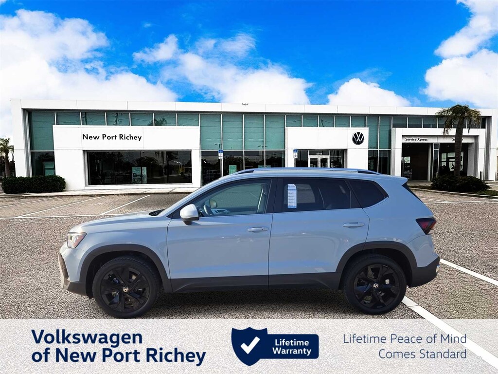 BUY WITH CONFIDENCE! WE LOVE TRADES! HASSLE FREE FINANCE PLANS FOR EVERYONE! PLEASE CALL TO ENSURE AVAILABLITY AS OUR INVENTORY CHANGES BY THE HOUR. Monument Gray 2025 Volkswagen Taos FWD 8-Speed Automatic with Tiptronic 1.5L I4 Turbocharged DOHC 16V LEV3-SULEV30 174hp 4-Wheel Disc Brakes, 6 Speakers, ABS brakes, Active Blind Spot Monitor, Air Conditioning, Alloy wheels, AM/FM radio: SiriusXM with 360L, Auto High-beam Headlights, Automatic temperature control, Brake assist, Bumpers: body-color, Cloudtex and Cloth Seating Surfaces, Compass, Delay-off headlights, Driver door bin, Driver vanity mirror, Dual front impact airbags, Dual front side impact airbags, Electronic Stability Control, Emergency communication system: VW Car-Net Safe & Secure 5-year, Exterior Parking Camera Rear, Front anti-roll bar, Front Bucket Seats, Front Center Armrest, Front dual zone A/C, Front reading lights, Front Strut Rear Torsion Beam Suspension, Front wheel independent suspension, Fully automatic headlights, Heated door mirrors, Heated Front Bucket Seats, Heated front seats, Heated steering wheel, Illuminated entry, Leather Shift Knob, Low tire pressure warning, Occupant sensing airbag, Outside temperature display, Overhead airbag, Overhead console, Panic alarm, Passenger door bin, Passenger vanity mirror, Power door mirrors, Power driver seat, Power steering, Power windows, Radio data system, Radio: MIB3 Composition Media AM/FM/HD, Rain sensing wipers, Rear anti-roll bar, Rear seat center armrest, Rear window defroster, Rear window wiper, Remote keyless entry, Security system, Speed control, Speed-sensing steering, Split folding rear seat, Spoiler, Steering wheel mounted audio controls, Tachometer, Telescoping steering wheel, Tilt steering wheel, Traction control, Trip computer, Variably intermittent wipers, Wheels: 18 2-Tone Machined Alloy.
