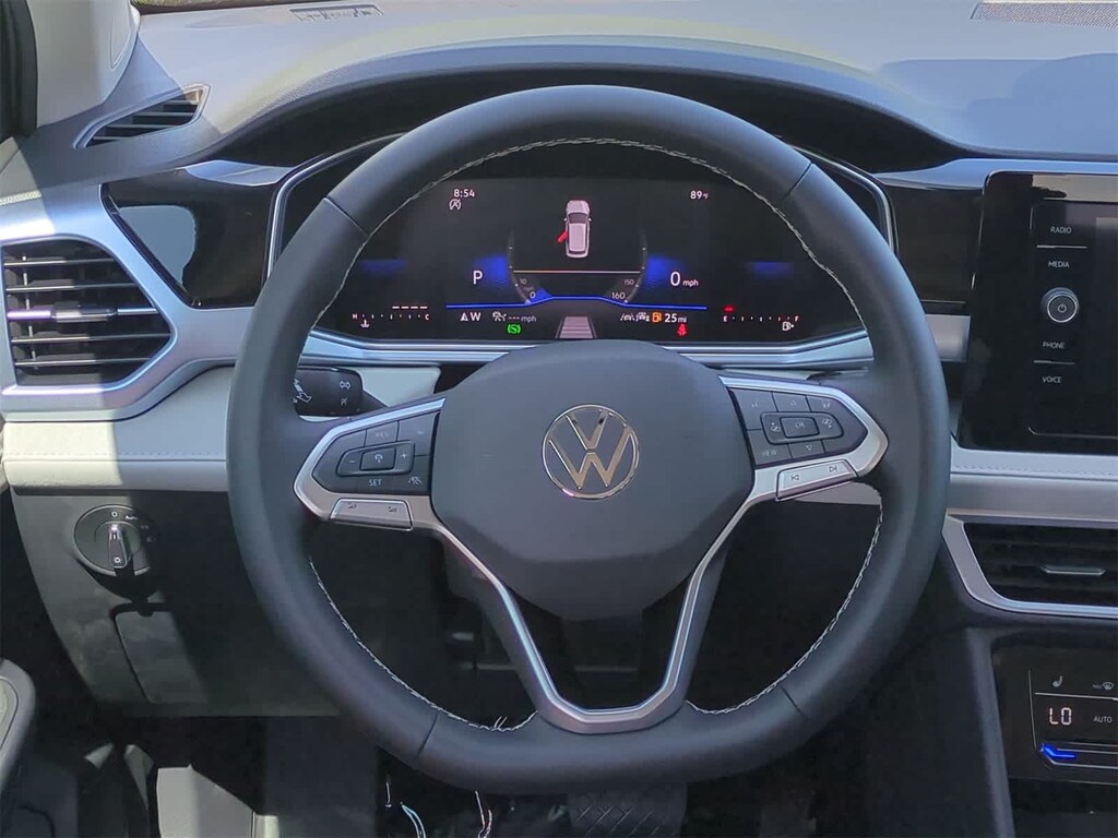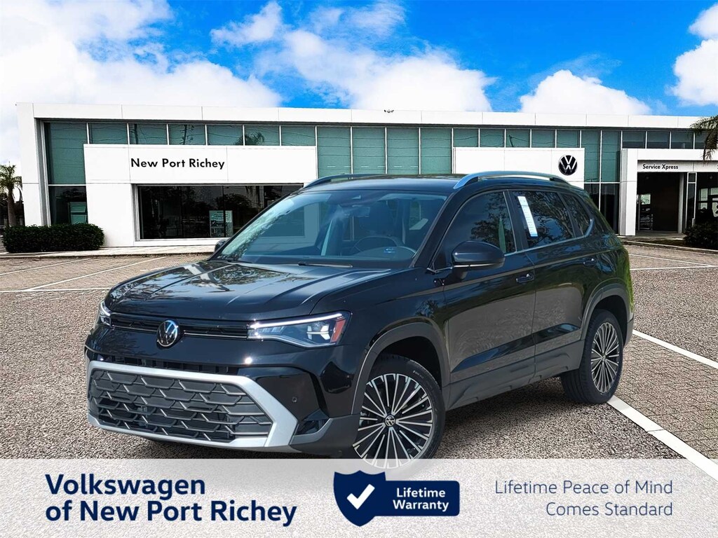 BUY WITH CONFIDENCE! WE LOVE TRADES! HASSLE FREE FINANCE PLANS FOR EVERYONE! PLEASE CALL TO ENSURE AVAILABLITY AS OUR INVENTORY CHANGES BY THE HOUR. Deep Black Pearl 2025 Volkswagen Taos FWD 8-Speed Automatic with Tiptronic 1.5L I4 Turbocharged DOHC 16V LEV3-SULEV30 174hp 4-Wheel Disc Brakes, 6 Speakers, ABS brakes, Active Blind Spot Monitor, Air Conditioning, Alloy wheels, AM/FM radio: SiriusXM with 360L, Auto High-beam Headlights, Automatic temperature control, Brake assist, Bumpers: body-color, Cloudtex and Cloth Seating Surfaces, Compass, Delay-off headlights, Driver door bin, Driver vanity mirror, Dual front impact airbags, Dual front side impact airbags, Electronic Stability Control, Emergency communication system: VW Car-Net Safe & Secure 5-year, Exterior Parking Camera Rear, Front anti-roll bar, Front Bucket Seats, Front Center Armrest, Front dual zone A/C, Front reading lights, Front Strut Rear Torsion Beam Suspension, Front wheel independent suspension, Fully automatic headlights, Heated door mirrors, Heated Front Bucket Seats, Heated front seats, Heated steering wheel, Illuminated entry, Leather Shift Knob, Low tire pressure warning, Occupant sensing airbag, Outside temperature display, Overhead airbag, Overhead console, Panic alarm, Passenger door bin, Passenger vanity mirror, Power door mirrors, Power driver seat, Power steering, Power windows, Radio data system, Radio: MIB3 Composition Media AM/FM/HD, Rain sensing wipers, Rear anti-roll bar, Rear seat center armrest, Rear window defroster, Rear window wiper, Remote keyless entry, Security system, Speed control, Speed-sensing steering, Split folding rear seat, Spoiler, Steering wheel mounted audio controls, Tachometer, Telescoping steering wheel, Tilt steering wheel, Traction control, Trip computer, Variably intermittent wipers, Wheels: 18 2-Tone Machined Alloy.