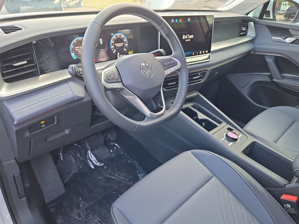BUY WITH CONFIDENCE! WE LOVE TRADES! HASSLE FREE FINANCE PLANS FOR EVERYONE! PLEASE CALL TO ENSURE AVAILABLITY AS OUR INVENTORY CHANGES BY THE HOUR. Pure White 2025 Volkswagen Tiguan AWD 8-Speed Automatic 2.0L TSI DOHC 4-Wheel Disc Brakes, 4-Wheel Independent Suspension, 7 Speakers, ABS brakes, Air Conditioning, Alloy wheels, AM/FM radio: SiriusXM with 360L, Auto High-beam Headlights, Auto-dimming Rear-View mirror, Automatic temperature control, Brake assist, Bumpers: body-color, Compass, Delay-off headlights, Driver door bin, Driver vanity mirror, Dual front impact airbags, Dual front side impact airbags, Electronic Stability Control, Emergency communication system: VW Car-Net Safe & Secure 5-year, Exterior Parking Camera Rear, Four wheel independent suspension, Front anti-roll bar, Front Bucket Seats, Front Center Armrest, Front dual zone A/C, Front reading lights, Fully automatic headlights, Heated door mirrors, Heated Front Seats, Heated front seats, Illuminated entry, Knee airbag, Leather Shift Knob, Low tire pressure warning, Occupant sensing airbag, Outside temperature display, Overhead airbag, Overhead console, Panic alarm, Passenger door bin, Passenger vanity mirror, Perforated V-Tex Leatherette Seating Surfaces, Power door mirrors, Power driver seat, Power Liftgate, Power steering, Power windows, Radio data system, Radio: MIB4 Composition Media Touchscreen AM/FM, Rain sensing wipers, Rear anti-roll bar, Rear reading lights, Rear seat center armrest, Rear side impact airbag, Rear window defroster, Rear window wiper, Remote keyless entry, Security system, Speed control, Speed-sensing steering, Split folding rear seat, Spoiler, Steering wheel mounted audio controls, Tachometer, Telescoping steering wheel, Tilt steering wheel, Traction control, Trip computer, Turn signal indicator mirrors, Variably intermittent wipers, Wheels: 19 2-Tone Machined Alloy.
