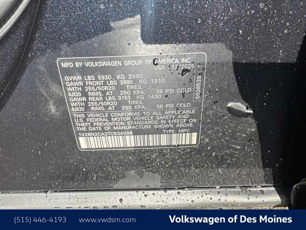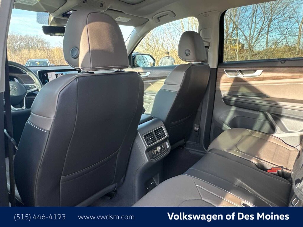 Atlas 2.0T SEL is nicely equipped with 3rd row seats: split-bench, 4-Wheel Disc Brakes, 4-Wheel Independent Suspension, 6 Speakers, ABS brakes, Air Conditioning, Alloy wheels, AM/FM radio: SiriusXM with 360L, Auto High-beam Headlights, Auto-dimming Rear-View mirror, Automatic temperature control, Brake assist, Bumpers: body-color, Compass, Delay-off headlights, Driver door bin, Driver vanity mirror, Dual front impact airbags, Dual front side impact airbags, Electronic Stability Control, Emergency communication system: VW Car-Net Safe & Secure 5-year, Exterior Parking Camera Rear, Four wheel independent suspension, Front anti-roll bar, Front Bucket Seats, Front Center Armrest, Front dual zone A/C, Front fog lights, Front reading lights, Fully automatic headlights, Garage door transmitter: HomeLink, Heads-Up Display, Heated and Actively Ventilated Front Bucket Seats, Heated door mirrors, Heated front seats, Heated rear seats, Heated steering wheel, Illuminated entry, Low tire pressure warning, Memory seat, Navigation System, Occupant sensing airbag, Outside temperature display, Overhead airbag, Overhead console, Panic alarm, Passenger door bin, Passenger vanity mirror, Perforated Vienna Leather Seating Surfaces, Power door mirrors, Power driver seat, Power Liftgate, Power moonroof: Panoramic, Power passenger seat, Power steering, Power windows, Radio data system, Radio: MIB3 Discover Pro with Navigation, Rain sensing wipers, Rear air conditioning, Rear anti-roll bar, Rear reading lights, Rear seat center armrest, Rear window defroster, Rear window wiper, Remote keyless entry, Security system, Speed control, Speed-sensing steering, Split folding rear seat, Spoiler, Steering wheel mounted audio controls, Tachometer, Telescoping steering wheel, Tilt steering wheel, Traction control, Trip computer, Turn signal indicator mirrors, Variably intermittent wipers, Ventilated front seats, and Wheels: 20 2-Tone Machined Alloy. Price includes: $3000 - Customer Bonus. Exp. 03/02/2026