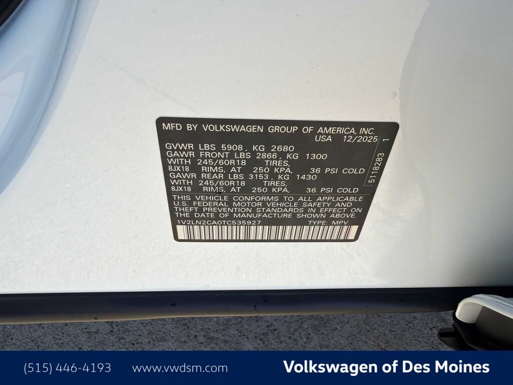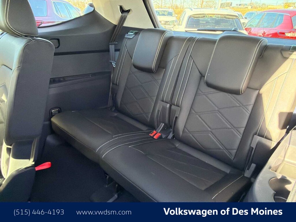 Atlas 2.0T SE is nicely equipped with 3rd row seats: split-bench, 4-Wheel Disc Brakes, 4-Wheel Independent Suspension, 6 Speakers, ABS brakes, Air Conditioning, Alloy wheels, AM/FM radio: SiriusXM with 360L, Auto High-beam Headlights, Auto-dimming Rear-View mirror, Automatic temperature control, Brake assist, Bumpers: body-color, Delay-off headlights, Driver door bin, Driver vanity mirror, Dual front impact airbags, Dual front side impact airbags, Electronic Stability Control, Emergency communication system: VW Car-Net Safe & Secure 5-year, Exterior Parking Camera Rear, Four wheel independent suspension, Front anti-roll bar, Front Bucket Seats, Front Center Armrest, Front dual zone A/C, Front fog lights, Front reading lights, Fully automatic headlights, Heated & Actively Ventilated Front Bucket Seats, Heated door mirrors, Heated front seats, Heated steering wheel, Illuminated entry, Low tire pressure warning, Occupant sensing airbag, Outside temperature display, Overhead airbag, Overhead console, Panic alarm, Passenger door bin, Passenger vanity mirror, Perforated V-Tex Leatherette Seating Surfaces, Power door mirrors, Power driver seat, Power steering, Power windows, Radio data system, Radio: MIB3 Composition Media, Rain sensing wipers, Rear air conditioning, Rear anti-roll bar, Rear reading lights, Rear seat center armrest, Rear window defroster, Rear window wiper, Remote keyless entry, Security system, Speed control, Speed-sensing steering, Split folding rear seat, Spoiler, Steering wheel mounted audio controls, Tachometer, Telescoping steering wheel, Tilt steering wheel, Traction control, Trip computer, Turn signal indicator mirrors, Variably intermittent wipers, Ventilated front seats, and Wheels: 18 2-Tone Machined Alloy. Price includes: $3000 - Customer Bonus. Exp. 03/02/2026