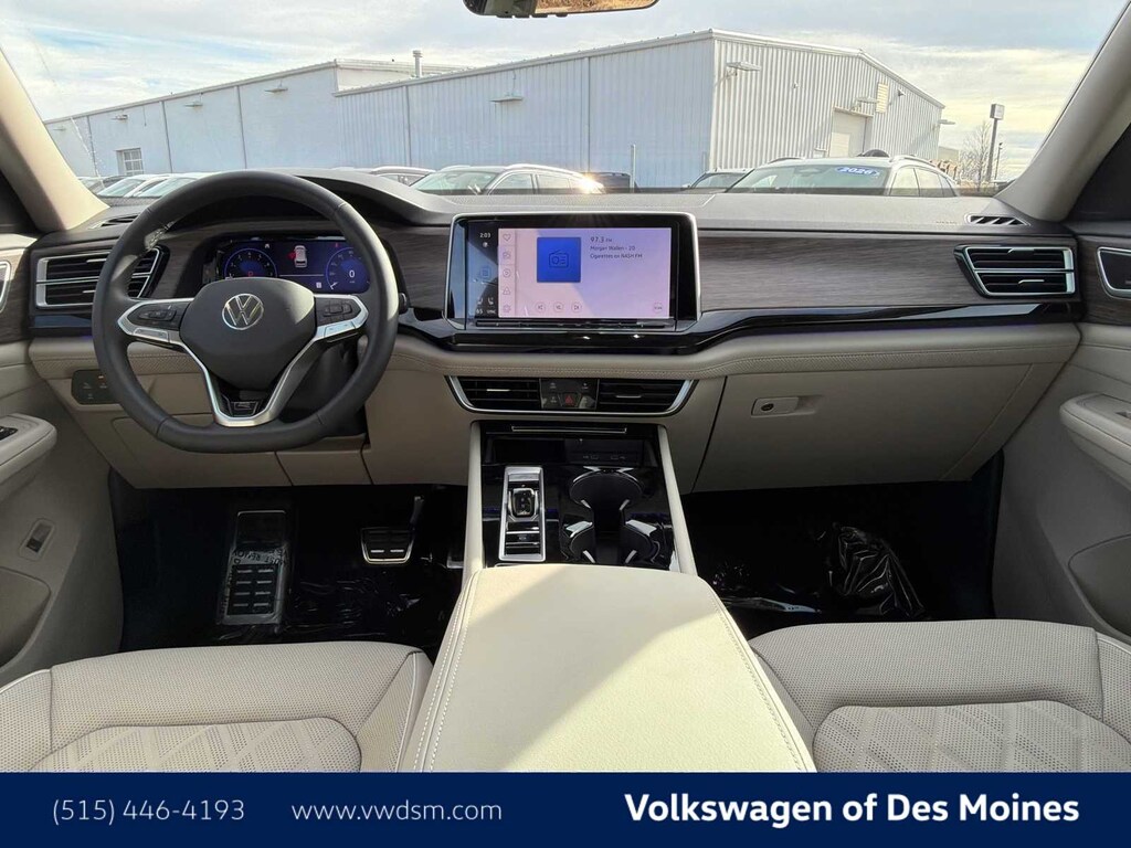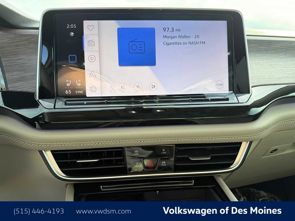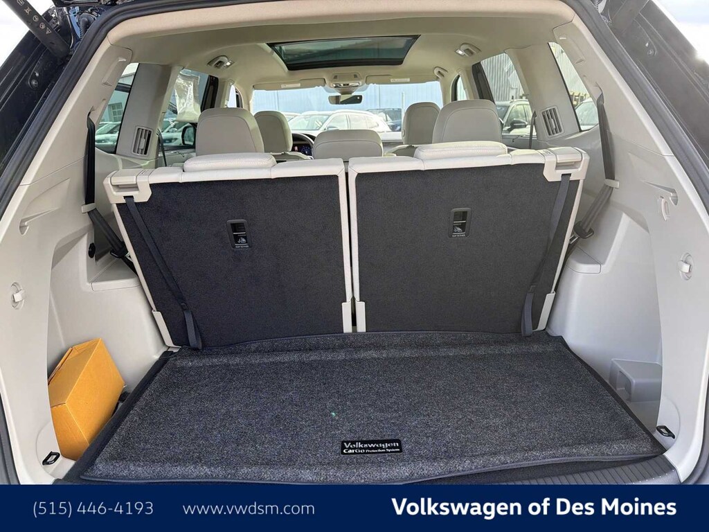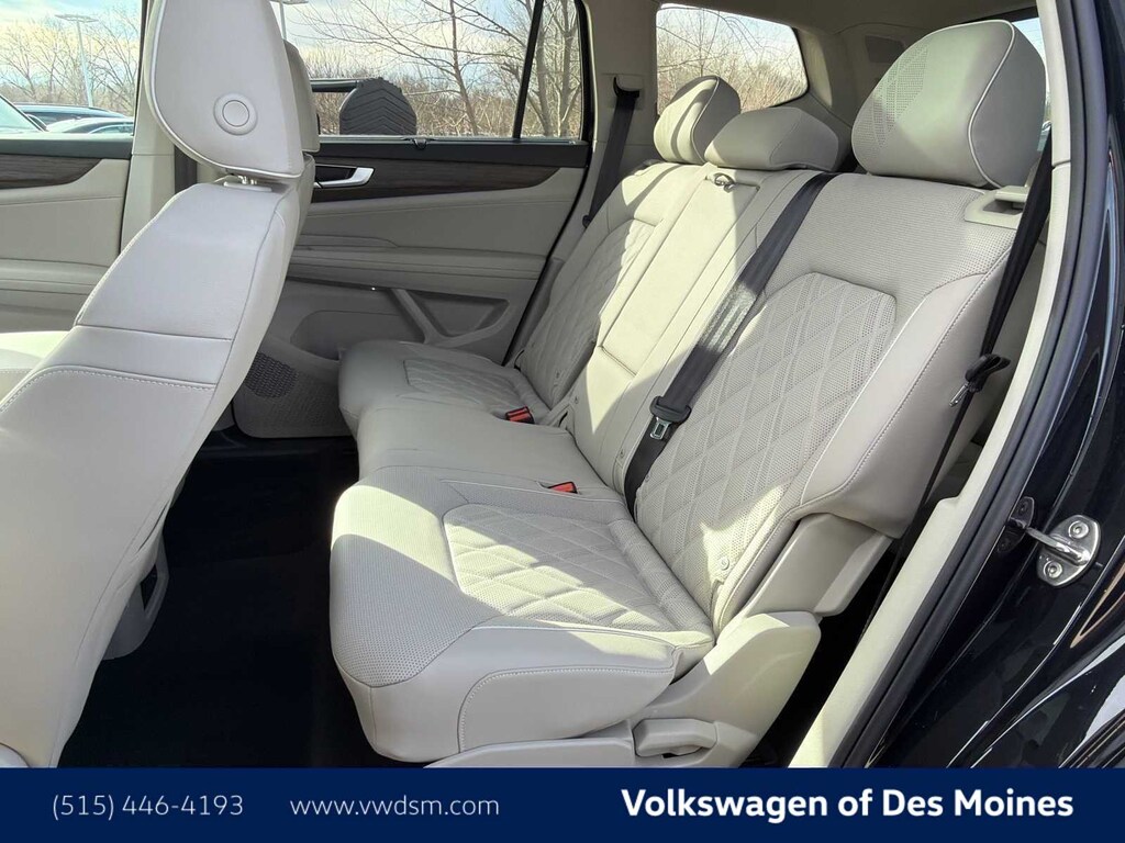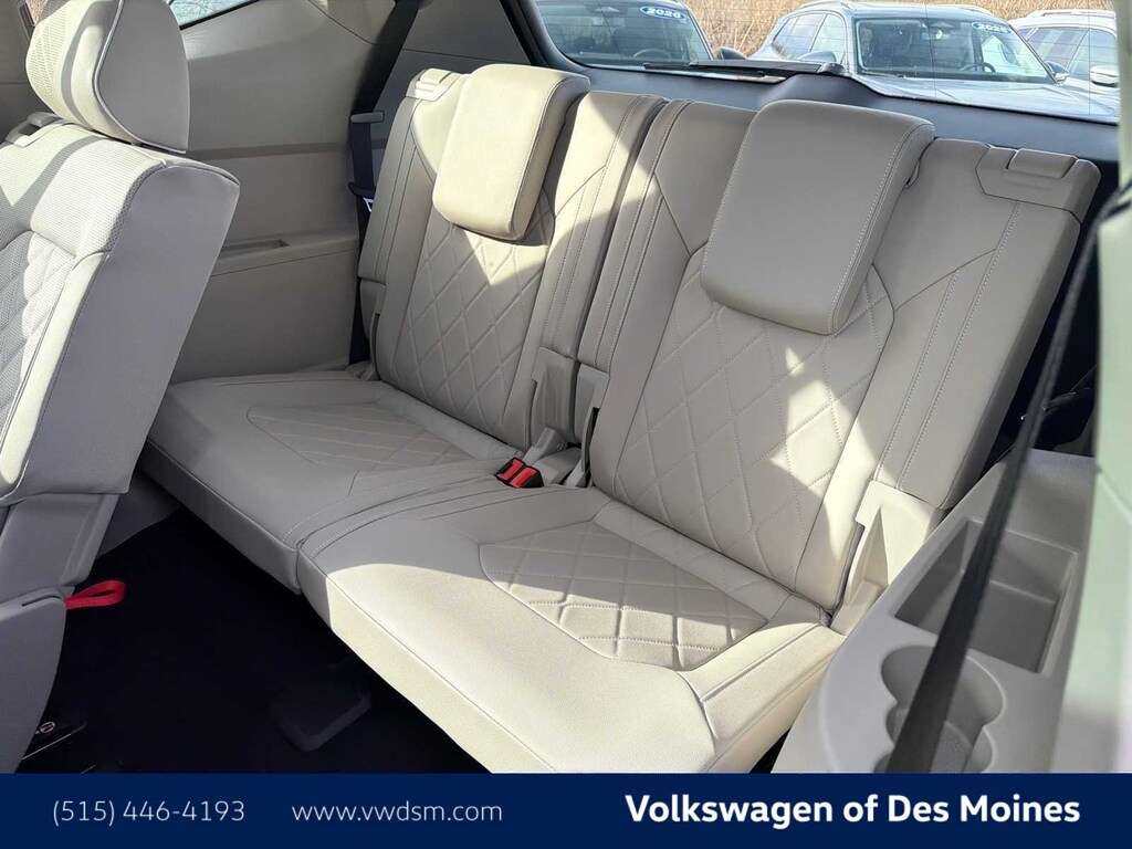 Atlas 2.0T SEL Premium R-Line is nicely equipped with 10 Speakers, 3rd row seats: split-bench, 4-Wheel Disc Brakes, 4-Wheel Independent Suspension, ABS brakes, Air Conditioning, Alloy wheels, AM/FM radio: SiriusXM with 360L, Auto High-beam Headlights, Auto-dimming Rear-View mirror, Automatic temperature control, Brake assist, Bumpers: body-color, Compass, Delay-off headlights, Driver door bin, Driver vanity mirror, Dual front impact airbags, Dual front side impact airbags, Electronic Stability Control, Emergency communication system: VW Car-Net Safe & Secure 5-year, Exterior Parking Camera Rear, Four wheel independent suspension, Front anti-roll bar, Front Bucket Seats, Front Center Armrest, Front dual zone A/C, Front fog lights, Front reading lights, Fully automatic headlights, Garage door transmitter: HomeLink, harman/kardonî Speakers, Heads-Up Display, Heated & Actively Ventilated Front Bucket Seats, Heated door mirrors, Heated front seats, Heated rear seats, Heated steering wheel, Illuminated entry, Leather steering wheel, Low tire pressure warning, Memory seat, Navigation System, Occupant sensing airbag, Outside temperature display, Overhead airbag, Overhead console, Panic alarm, Passenger door bin, Passenger vanity mirror, Perforated Vienna Leather Seating Surfaces, Power door mirrors, Power driver seat, Power Liftgate, Power moonroof: Panoramic, Power passenger seat, Power steering, Power windows, Radio data system, Radio: MIB3 Discover Pro w/Navigation, Rain sensing wipers, Rear air conditioning, Rear anti-roll bar, Rear audio controls, Rear reading lights, Rear seat center armrest, Rear window defroster, Rear window wiper, Remote keyless entry, Seat Inserts w/Diamond-Pattern Stitching, Security system, Speed control, Speed-sensing steering, Split folding rear seat, Spoiler, Sport steering wheel, Steering wheel mounted audio controls, Tachometer, Telescoping steering wheel, Tilt steering wheel, Traction control, Trip computer, Turn signal indicator mirrors, Variably intermittent wipers, Ventilated front seats, and Wheels: 21 2-Tone Machined Alloy. Price includes: $3000 - Customer Bonus. Exp. 03/02/2026
