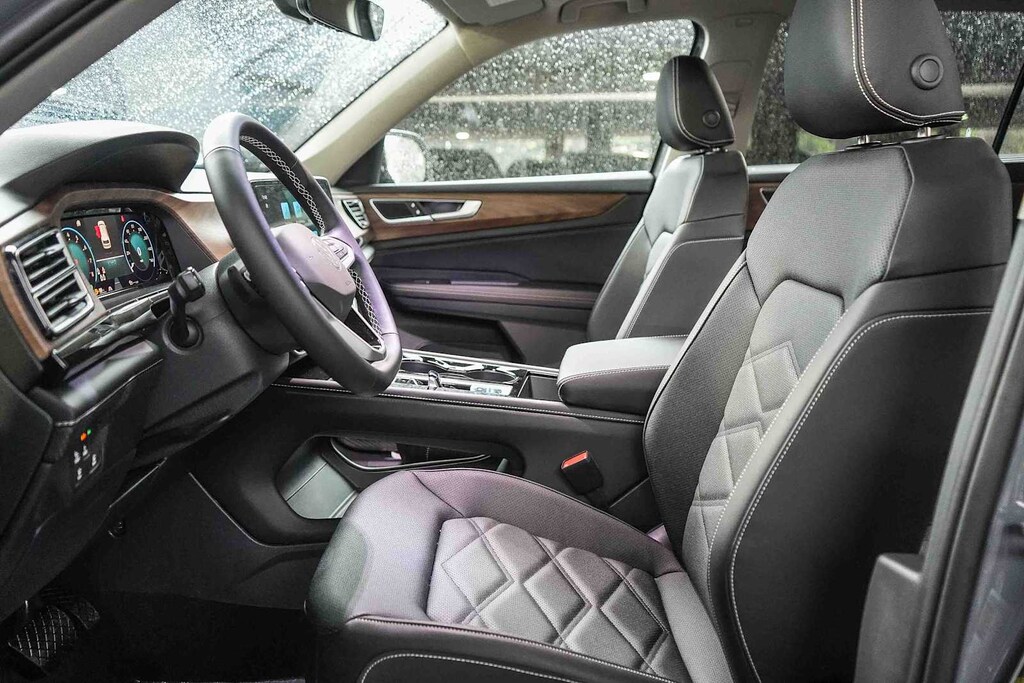 Atlas 2.0T SE w/Technology, 4D Sport Utility, 2.0L TSI, 8-Speed Automatic with Tiptronic, FWD, Gray, Titan Black Artificial Leather, 3rd row seats: split-bench, 6 Speakers, Brake assist, Electronic Stability Control, Exterior Parking Camera Rear, Perforated V-Tex Leatherette Seating Surfaces, Power Liftgate, and Wheels: 20 2-Tone Machined Alloy