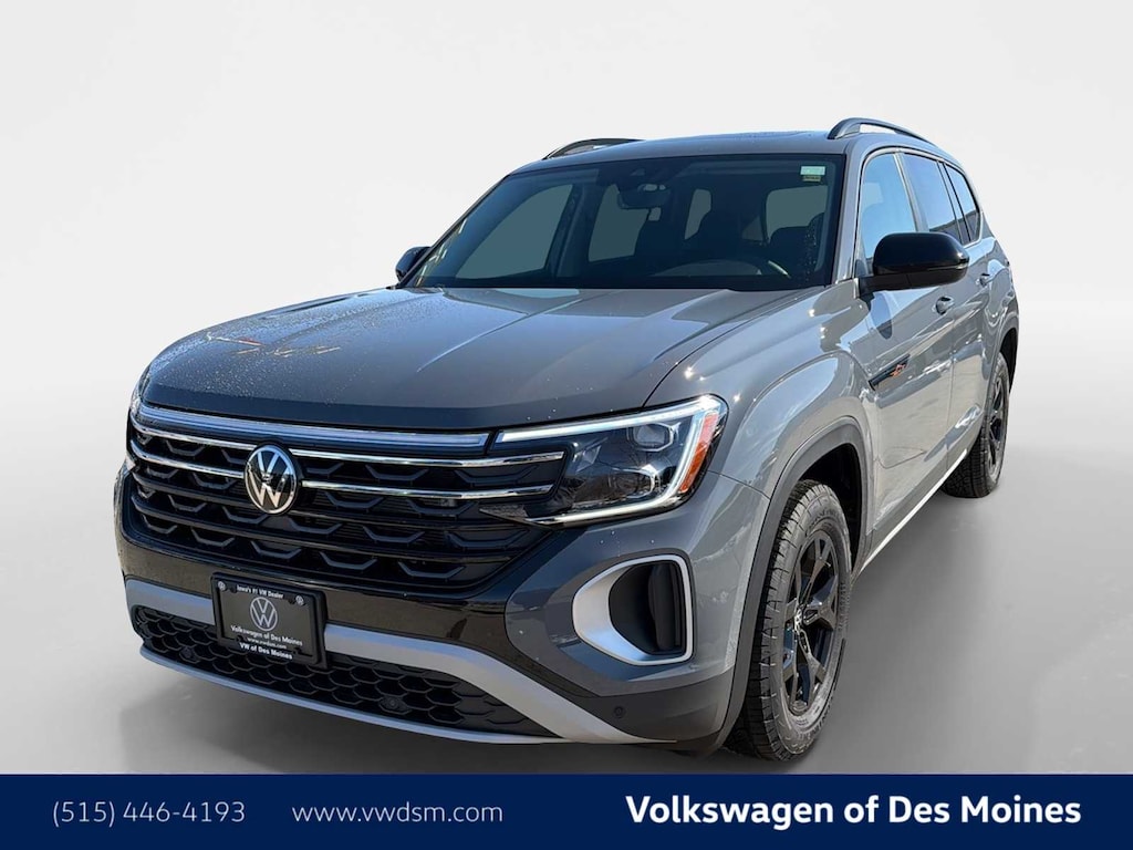Atlas 2.0T Peak Edition is nicely equipped with 3rd row seats: split-bench, 4-Wheel Disc Brakes, 4-Wheel Independent Suspension, 6 Speakers, ABS brakes, Air Conditioning, Alloy wheels, AM/FM radio: SiriusXM with 360L, Auto High-beam Headlights, Auto-dimming Rear-View mirror, Automatic temperature control, Brake assist, Bumpers: body-color, Compass, Delay-off headlights, Driver door bin, Driver vanity mirror, Dual front impact airbags, Dual front side impact airbags, Electronic Stability Control, Emergency communication system: VW Car-Net Safe & Secure 5-year, Exterior Parking Camera Rear, Four wheel independent suspension, Front anti-roll bar, Front Bucket Seats, Front Center Armrest, Front dual zone A/C, Front fog lights, Front reading lights, Fully automatic headlights, Garage door transmitter: Homelink, Heated and Actively Ventilated Front Bucket Seats, Heated door mirrors, Heated front seats, Heated steering wheel, Illuminated entry, Low tire pressure warning, Occupant sensing airbag, Outside temperature display, Overhead airbag, Overhead console, Panic alarm, Passenger door bin, Passenger vanity mirror, Perforated V-Tex Leatherette Seating Surfaces, Power door mirrors, Power driver seat, Power Liftgate, Power moonroof: Panoramic, Power steering, Power windows, Radio data system, Radio: MIB3 Composition Media, Rain sensing wipers, Rear air conditioning, Rear anti-roll bar, Rear reading lights, Rear seat center armrest, Rear window defroster, Rear window wiper, Remote keyless entry, Security system, Speed control, Speed-sensing steering, Split folding rear seat, Spoiler, Steering wheel mounted audio controls, Tachometer, Telescoping steering wheel, Tilt steering wheel, Traction control, Trip computer, Turn signal indicator mirrors, Variably intermittent wipers, Ventilated front seats, and Wheels: 18 Black Painted 5-Spoke Alloy. Price includes: $1000 - Customer Bonus. Exp. 04/30/2026