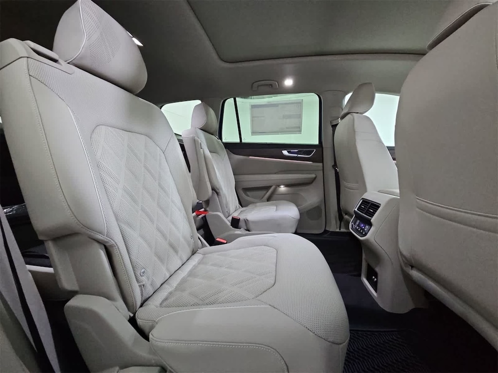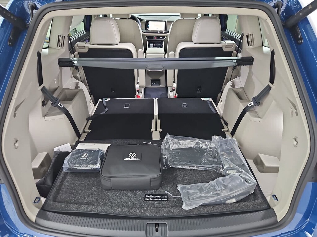 Leather Seats, Third Row Seat, Navigation, Sunroof, Panoramic Roof, All Wheel Drive, Power Liftgate, Rear Air, Heated Driver Seat, Heated Rear Seat, Cooled Driver Seat, Back-Up Camera, Turbocharged, Premium Sound System, Satellite Radio Rear Spoiler, MP3 Player, Rear Seat Audio Controls, Remote Trunk Release, Privacy Glass. Volkswagen 2.0T SEL Premium R-Line with Mountain Lake Blue Metallic exterior and Shetland Beige interior features a 4 Cylinder Engine with 269 HP at 5500 RPM*.