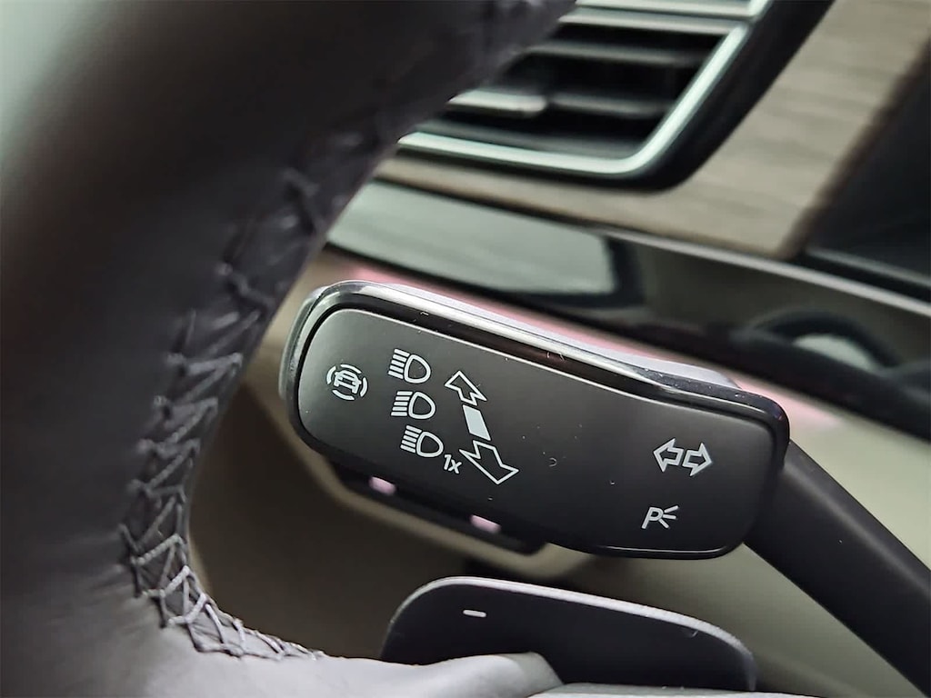 Nav System, Moonroof, Third Row Seat, Heated Leather Seats, All Wheel Drive, Turbo Charged Engine, Aluminum Wheels, Hitch, Panoramic Roof. Mountain Lake Blue Metallic exterior and Shetland Beige interior, 2.0T SEL Premium R-Line trim.