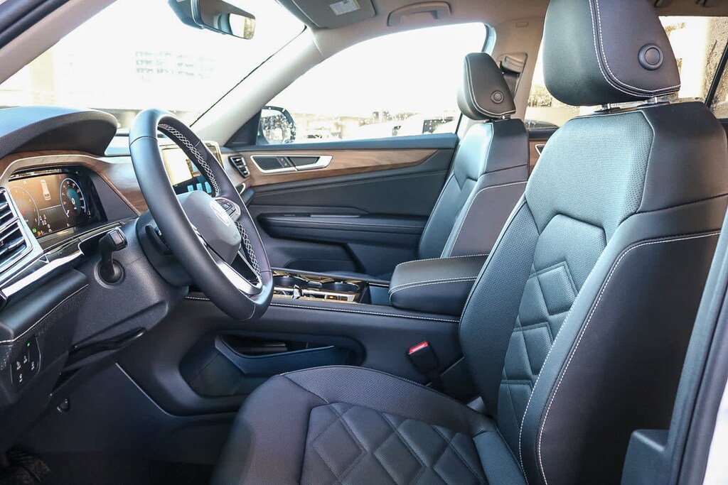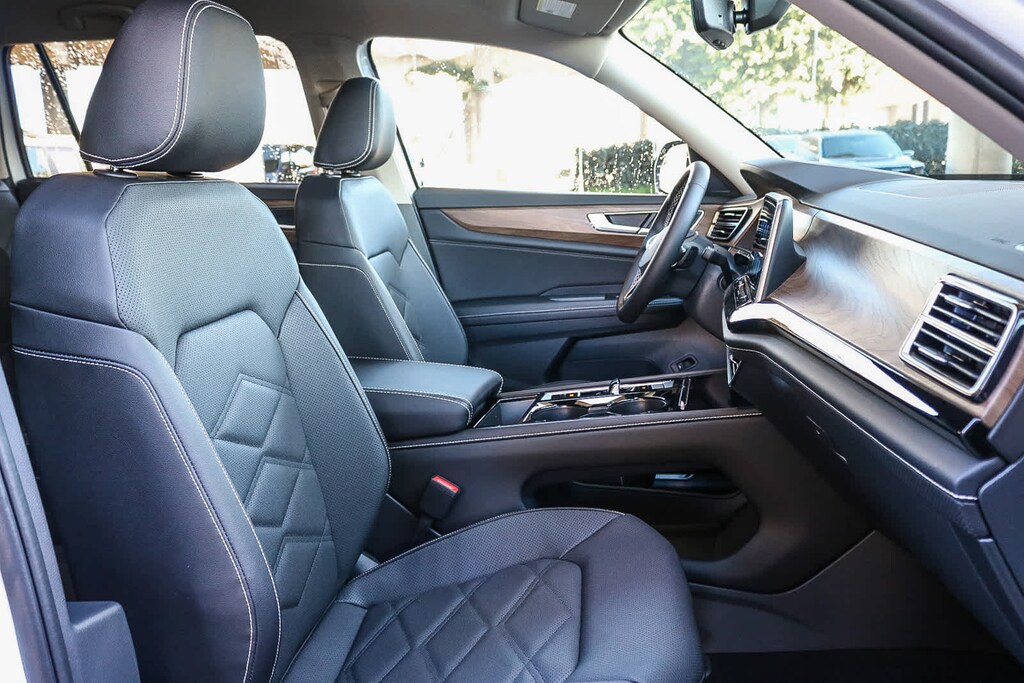 Atlas 2.0T SE w/Technology, 4D Sport Utility, 2.0L TSI, 8-Speed Automatic with Tiptronic, FWD, Opal White, Titan Black Artificial Leather, 6 Speakers, Brake assist, Electronic Stability Control, Exterior Parking Camera Rear, Power Liftgate, and Wheels: 20 2-Tone Machined Alloy