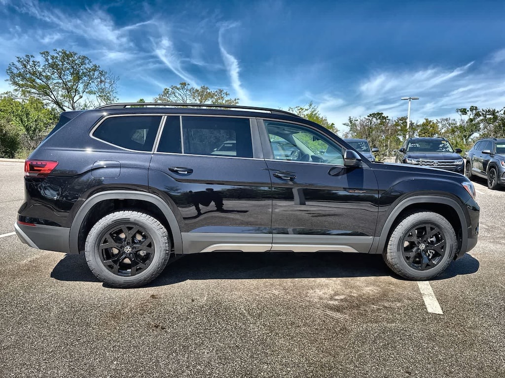 Buy with confidence! We love trades! Hassle free finance plans for everyone! Please call to ensure availability as our inventory changes by the hour. Deep Black Pearl 2026 Volkswagen Atlas AWD 8-Speed Automatic with Tiptronic 2.0L TSI 3rd row seats: split-bench, 4-Wheel Disc Brakes, 4-Wheel Independent Suspension, 6 Speakers, ABS brakes, Air Conditioning, Alloy wheels, AM/FM radio: SiriusXM with 360L, Auto High-beam Headlights, Auto-dimming Rear-View mirror, Automatic temperature control, Brake assist, Bumpers: body-color, Compass, Delay-off headlights, Driver door bin, Driver vanity mirror, Dual front impact airbags, Dual front side impact airbags, Electronic Stability Control, Emergency communication system: VW Car-Net Safe & Secure 5-year, Exterior Parking Camera Rear, Four wheel independent suspension, Front anti-roll bar, Front Bucket Seats, Front Center Armrest, Front dual zone A/C, Front fog lights, Front reading lights, Fully automatic headlights, Garage door transmitter: Homelink, Heated and Actively Ventilated Front Bucket Seats, Heated door mirrors, Heated front seats, Heated steering wheel, Illuminated entry, Low tire pressure warning, Occupant sensing airbag, Outside temperature display, Overhead airbag, Overhead console, Panic alarm, Passenger door bin, Passenger vanity mirror, Perforated V-Tex Leatherette Seating Surfaces, Power door mirrors, Power driver seat, Power Liftgate, Power moonroof: Panoramic, Power steering, Power windows, Radio data system, Radio: MIB3 Composition Media, Rain sensing wipers, Rear air conditioning, Rear anti-roll bar, Rear reading lights, Rear seat center armrest, Rear window defroster, Rear window wiper, Remote keyless entry, Security system, Speed control, Speed-sensing steering, Split folding rear seat, Spoiler, Steering wheel mounted audio controls, Tachometer, Telescoping steering wheel, Tilt steering wheel, Traction control, Trip computer, Turn signal indicator mirrors, Variably intermittent wipers, Ventilated front seats, Wheels: 18 Black Painted 5-Spoke Alloy.