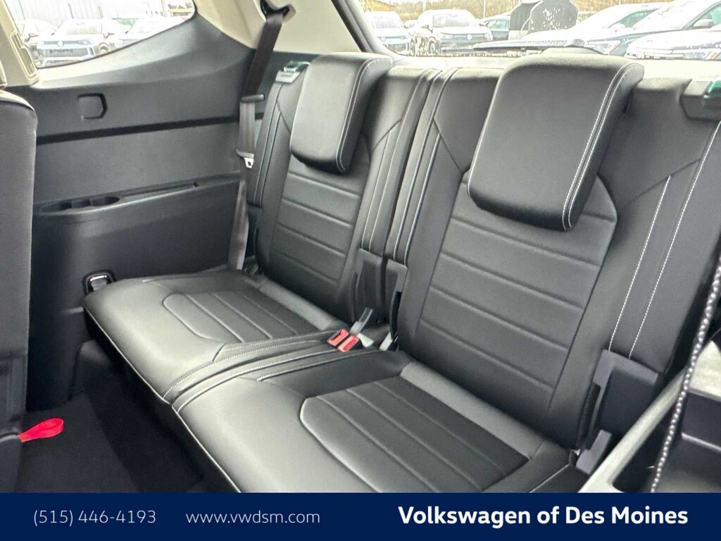 Atlas 2.0T SEL is nicely equipped with 3rd row seats: split-bench, 4-Wheel Disc Brakes, 4-Wheel Independent Suspension, 6 Speakers, ABS brakes, Air Conditioning, Alloy wheels, AM/FM radio: SiriusXM with 360L, Auto High-beam Headlights, Auto-dimming Rear-View mirror, Automatic temperature control, Brake assist, Bumpers: body-color, Compass, Delay-off headlights, Driver door bin, Driver vanity mirror, Dual front impact airbags, Dual front side impact airbags, Electronic Stability Control, Emergency communication system: VW Car-Net Safe & Secure 5-year, Exterior Parking Camera Rear, Four wheel independent suspension, Front anti-roll bar, Front Bucket Seats, Front Center Armrest, Front dual zone A/C, Front fog lights, Front reading lights, Fully automatic headlights, Garage door transmitter: HomeLink, Heads-Up Display, Heated and Actively Ventilated Front Bucket Seats, Heated door mirrors, Heated front seats, Heated rear seats, Heated steering wheel, Illuminated entry, Low tire pressure warning, Memory seat, Navigation System, Occupant sensing airbag, Outside temperature display, Overhead airbag, Overhead console, Panic alarm, Passenger door bin, Passenger vanity mirror, Perforated Vienna Leather Seating Surfaces, Power door mirrors, Power driver seat, Power Liftgate, Power moonroof: Panoramic, Power passenger seat, Power steering, Power windows, Radio data system, Radio: MIB3 Discover Pro with Navigation, Rain sensing wipers, Rear air conditioning, Rear anti-roll bar, Rear reading lights, Rear seat center armrest, Rear window defroster, Rear window wiper, Remote keyless entry, Security system, Speed control, Speed-sensing steering, Split folding rear seat, Spoiler, Steering wheel mounted audio controls, Tachometer, Telescoping steering wheel, Tilt steering wheel, Traction control, Trip computer, Turn signal indicator mirrors, Variably intermittent wipers, Ventilated front seats, and Wheels: 20 2-Tone Machined Alloy. Price includes: $3000 - Customer Bonus. Exp. 02/02/2026