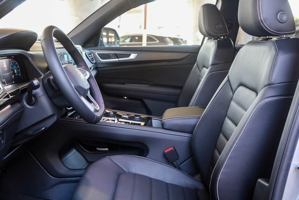 Atlas Cross Sport 2.0T SEL R-Line Black, 4D Sport Utility, 2.0L TSI, 8-Speed Automatic with Tiptronic, AWD, Silver Mist, Titan Black Leather, 8-Way Power Driver and Passenger Seat, ABS brakes, Active Cruise Control, Alloy wheels, Compass, Electronic Stability Control, Front dual zone A/C, Heated door mirrors, Heated front seats, Heated rear seats, Illuminated entry, Low tire pressure warning, Memory seat, Navigation System, Power Liftgate, Power steering, Power windows, Remote keyless entry with push button start, Steering wheel mounted audio controls, and Traction control