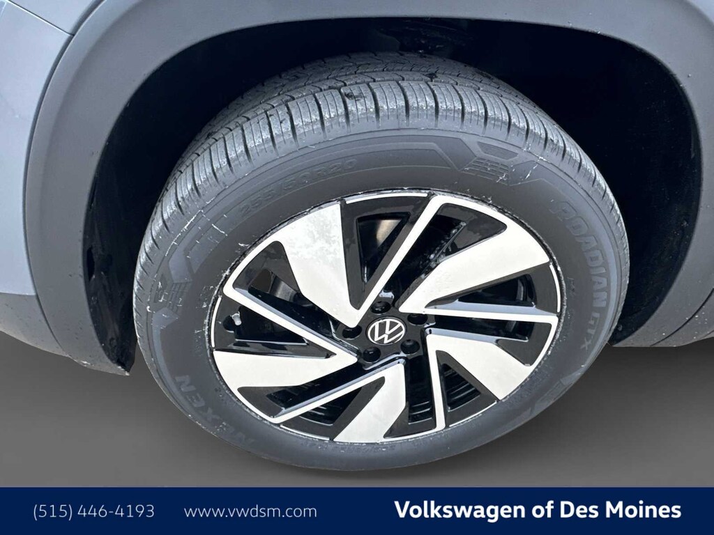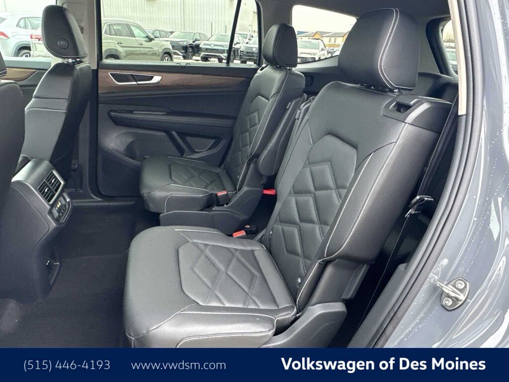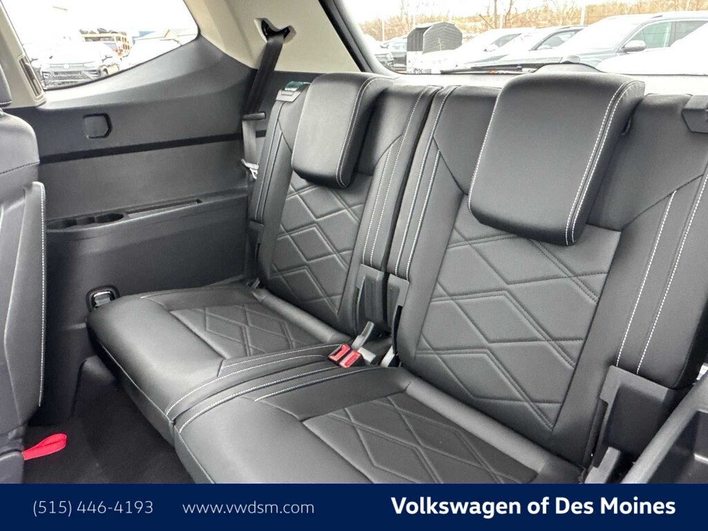 Atlas 2.0T SE w/Technology is nicely equipped with 3rd row seats: split-bench, 4-Wheel Disc Brakes, 4-Wheel Independent Suspension, 6 Speakers, ABS brakes, Air Conditioning, Alloy wheels, AM/FM radio: SiriusXM with 360L, Auto High-beam Headlights, Auto-dimming Rear-View mirror, Automatic temperature control, Brake assist, Bumpers: body-color, Compass, Delay-off headlights, Driver door bin, Driver vanity mirror, Dual front impact airbags, Dual front side impact airbags, Electronic Stability Control, Emergency communication system: VW Car-Net Safe & Secure 5-year, Exterior Parking Camera Rear, Four wheel independent suspension, Front anti-roll bar, Front Bucket Seats, Front Center Armrest, Front dual zone A/C, Front fog lights, Front reading lights, Fully automatic headlights, Garage door transmitter: HomeLink, Heated & Actively Ventilated Front Bucket Seats, Heated door mirrors, Heated front seats, Heated steering wheel, Illuminated entry, Low tire pressure warning, Occupant sensing airbag, Outside temperature display, Overhead airbag, Overhead console, Panic alarm, Passenger door bin, Passenger vanity mirror, Perforated V-Tex Leatherette Seating Surfaces, Power door mirrors, Power driver seat, Power Liftgate, Power steering, Power windows, Radio data system, Radio: MIB3 Composition Media, Rain sensing wipers, Rear air conditioning, Rear anti-roll bar, Rear reading lights, Rear seat center armrest, Rear window defroster, Rear window wiper, Remote keyless entry, Security system, Speed control, Speed-sensing steering, Split folding rear seat, Spoiler, Steering wheel mounted audio controls, Tachometer, Telescoping steering wheel, Tilt steering wheel, Traction control, Trip computer, Turn signal indicator mirrors, Variably intermittent wipers, Ventilated front seats, and Wheels: 20 2-Tone Machined Alloy. Price includes: $3000 - Customer Bonus. Exp. 02/02/2026