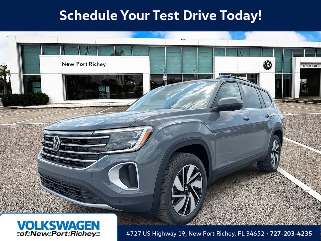 Buy with confidence! We love trades! Hassle free finance plans for everyone! Please call to ensure availability as our inventory changes by the hour. Pure Gray 2026 Volkswagen Atlas FWD 8-Speed Automatic with Tiptronic 2.0L TSI 3rd row seats: split-bench, 4-Wheel Disc Brakes, 4-Wheel Independent Suspension, 6 Speakers, ABS brakes, Air Conditioning, Alloy wheels, AM/FM radio: SiriusXM with 360L, Auto High-beam Headlights, Auto-dimming Rear-View mirror, Automatic temperature control, Brake assist, Bumpers: body-color, Compass, Delay-off headlights, Driver door bin, Driver vanity mirror, Dual front impact airbags, Dual front side impact airbags, Electronic Stability Control, Emergency communication system: VW Car-Net Safe & Secure 5-year, Exterior Parking Camera Rear, Four wheel independent suspension, Front anti-roll bar, Front Bucket Seats, Front Center Armrest, Front dual zone A/C, Front fog lights, Front reading lights, Fully automatic headlights, Garage door transmitter: HomeLink, Heated and Actively Ventilated Front Bucket Seats, Heated door mirrors, Heated front seats, Heated steering wheel, Illuminated entry, Low tire pressure warning, Occupant sensing airbag, Outside temperature display, Overhead airbag, Overhead console, Panic alarm, Passenger door bin, Passenger vanity mirror, Perforated V-Tex Leatherette Seating Surfaces, Power door mirrors, Power driver seat, Power Liftgate, Power steering, Power windows, Radio data system, Radio: MIB3 Composition Media, Rain sensing wipers, Rear air conditioning, Rear anti-roll bar, Rear reading lights, Rear seat center armrest, Rear window defroster, Rear window wiper, Remote keyless entry, Security system, Speed control, Speed-sensing steering, Split folding rear seat, Spoiler, Steering wheel mounted audio controls, Tachometer, Telescoping steering wheel, Tilt steering wheel, Traction control, Trip computer, Turn signal indicator mirrors, Variably intermittent wipers, Ventilated front seats, Wheels: 20 2-Tone Machined Alloy.