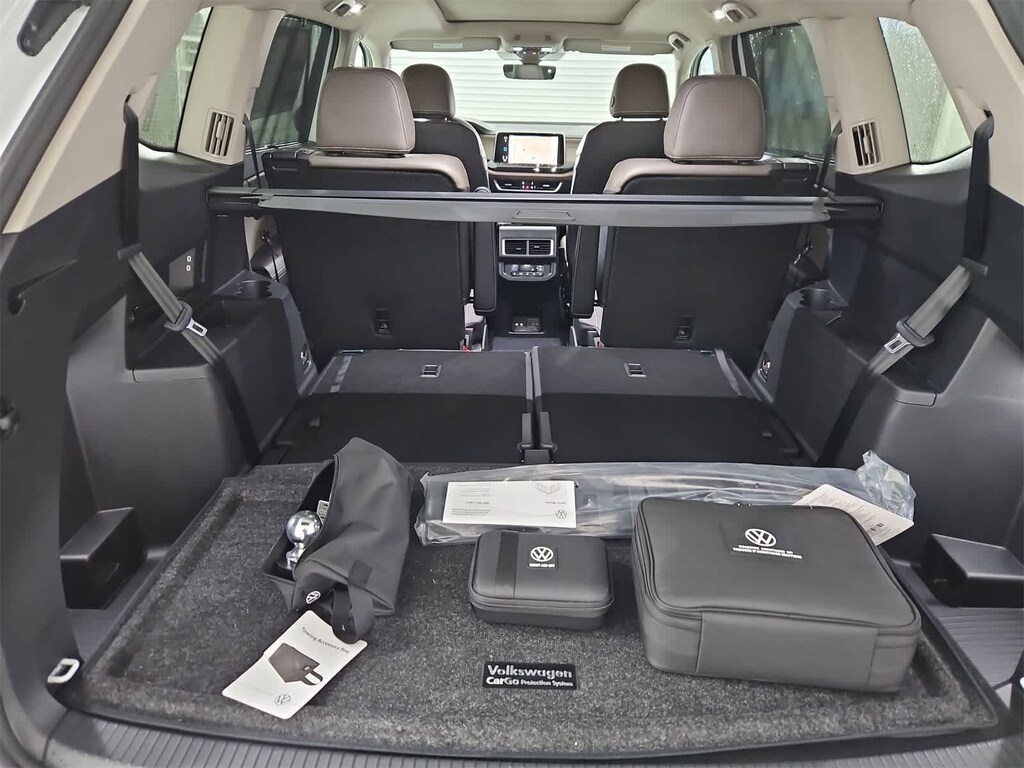 Leather Seats, Third Row Seat, Navigation, Sunroof, Panoramic Roof, All Wheel Drive, Power Liftgate, Rear Air, Heated Driver Seat, Heated Rear Seat, Cooled Driver Seat, Back-Up Camera, Turbocharged, Satellite Radio, iPod/MP3 Input Rear Spoiler, MP3 Player, Remote Trunk Release, Privacy Glass, Keyless Entry. Volkswagen 2.0T SEL with Opal White Pearl exterior and French Roast and Black interior features a 4 Cylinder Engine with 269 HP at 5500 RPM*.