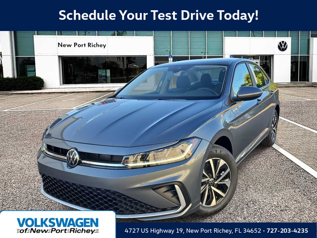 Buy with confidence! We love trades! Hassle free finance plans for everyone! Please call to ensure availability as our inventory changes by the hour. Platinum Gray Metallic 2026 Volkswagen Jetta FWD 8-Speed Automatic with Tiptronic 1.5L I-4 DI DOHC Turbocharged 4 Speakers, 4-Wheel Disc Brakes, ABS brakes, Active Blind Spot Monitor, Air Conditioning, Alloy wheels, Auto-dimming Rear-View mirror, Automatic temperature control, Brake assist, Bumpers: body-color, Cloth Seat Trim, Delay-off headlights, Driver door bin, Driver vanity mirror, Dual front impact airbags, Dual front side impact airbags, Electronic Stability Control, Emergency communication system: VW Car-Net Safe & Secure 5-year, Exterior Parking Camera Rear, Front anti-roll bar, Front Bucket Seats, Front Center Armrest, Front dual zone A/C, Front Seats, Front wheel independent suspension, Fully automatic headlights, Heated door mirrors, Illuminated entry, Leather Shift Knob, Leather steering wheel, Low tire pressure warning, Occupant sensing airbag, Outside temperature display, Overhead airbag, Overhead console, Panic alarm, Passenger door bin, Passenger vanity mirror, Power door mirrors, Power steering, Power windows, Radio data system, Radio: MIB3 Composition Color with 8 Touchscreen, Rain sensing wipers, Rear anti-roll bar, Rear reading lights, Rear window defroster, Remote keyless entry, Speed control, Speed-sensing steering, Split folding rear seat, Steering wheel mounted audio controls, Tachometer, Telescoping steering wheel, Tilt steering wheel, Traction control, Trip computer, Variably intermittent wipers, Wheels: 16 2-Tone Machined Alloy.