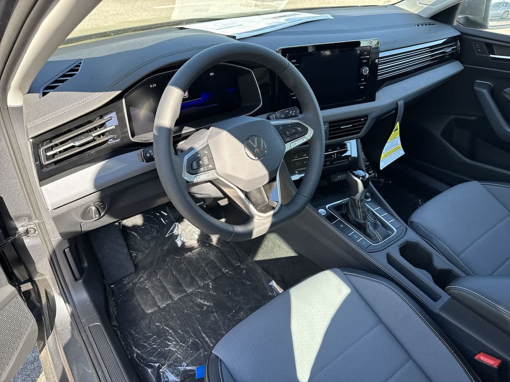 Buy with confidence! We love trades! Hassle free finance plans for everyone! Please call to ensure availability as our inventory changes by the hour. Platinum Gray Metallic 2026 Volkswagen Jetta FWD 8-Speed Automatic with Tiptronic 1.5L I-4 DI DOHC Turbocharged 4-Wheel Disc Brakes, 6 Speakers, ABS brakes, Active Blind Spot Monitor, Air Conditioning, Alloy wheels, AM/FM radio: SiriusXM with 360L, Auto-dimming Rear-View mirror, Automatic temperature control, Brake assist, Bumpers: body-color, CloudTex and V-Tex Leatherette Seat Trim, Delay-off headlights, Driver door bin, Driver vanity mirror, Dual front impact airbags, Dual front side impact airbags, Electronic Stability Control, Emergency communication system: VW Car-Net Safe & Secure 5-year, Exterior Parking Camera Rear, Front anti-roll bar, Front Bucket Seats, Front Center Armrest, Front dual zone A/C, Front wheel independent suspension, Fully automatic headlights, Heated door mirrors, Heated Front Seats, Heated front seats, Illuminated entry, Leather Shift Knob, Leather steering wheel, Low tire pressure warning, Occupant sensing airbag, Outside temperature display, Overhead airbag, Overhead console, Panic alarm, Passenger door bin, Passenger vanity mirror, Power door mirrors, Power driver seat, Power moonroof: Panoramic, Power steering, Power windows, Radio data system, Radio: MIB3 Composition Media with 8 Touchscreen, Rain sensing wipers, Rear anti-roll bar, Rear reading lights, Rear seat center armrest, Rear window defroster, Remote keyless entry, Speed control, Speed-sensing steering, Split folding rear seat, Steering wheel mounted audio controls, Tachometer, Telescoping steering wheel, Tilt steering wheel, Traction control, Trip computer, Variably intermittent wipers, Wheels: 17 Twin 5-Spoke 2-Tone Machined Alloy.