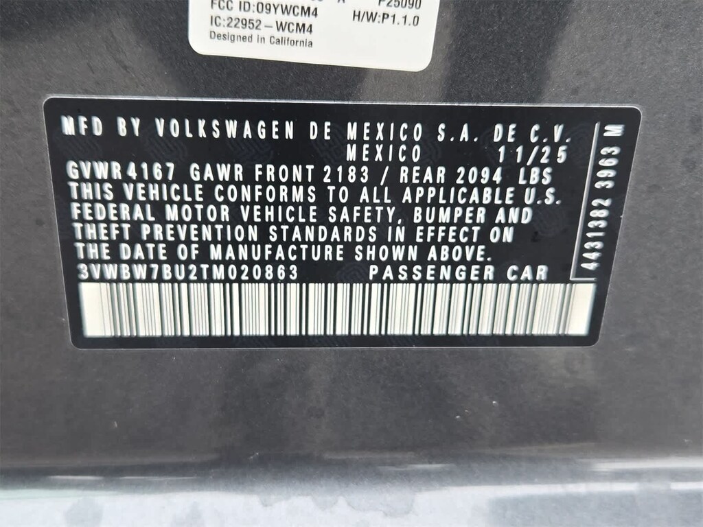 BUY WITH CONFIDENCE! WE LOVE TRADES! HASSLE FREE FINANCE PLANS FOR EVERYONE! PLEASE CALL TO ENSURE AVAILABLITY AS OUR INVENTORY CHANGES BY THE HOUR. Platinum Gray Metallic 2026 Volkswagen Jetta FWD 8-Speed Automatic with Tiptronic 1.5L I-4 DI DOHC Turbocharged 4 Speakers, 4-Wheel Disc Brakes, ABS brakes, Active Blind Spot Monitor, Air Conditioning, Alloy wheels, Auto-dimming Rear-View mirror, Automatic temperature control, Brake assist, Bumpers: body-color, Cloth Seat Trim, Delay-off headlights, Driver door bin, Driver vanity mirror, Dual front impact airbags, Dual front side impact airbags, Electronic Stability Control, Emergency communication system: VW Car-Net Safe & Secure 5-year, Exterior Parking Camera Rear, Front anti-roll bar, Front Bucket Seats, Front Center Armrest, Front dual zone A/C, Front wheel independent suspension, Fully automatic headlights, Heated door mirrors, Heated Front Seats, Heated front seats, Illuminated entry, Leather Shift Knob, Leather steering wheel, Low tire pressure warning, Occupant sensing airbag, Outside temperature display, Overhead airbag, Overhead console, Panic alarm, Passenger door bin, Passenger vanity mirror, Power door mirrors, Power steering, Power windows, Radio data system, Radio: MIB3 Composition Color with 8 Touchscreen, Rain sensing wipers, Rear anti-roll bar, Rear reading lights, Rear seat center armrest, Rear window defroster, Remote keyless entry, Speed control, Speed-sensing steering, Split folding rear seat, Steering wheel mounted audio controls, Tachometer, Telescoping steering wheel, Tilt steering wheel, Traction control, Trip computer, Variably intermittent wipers, Wheels: 17 2-Tone Machined Alloy.
