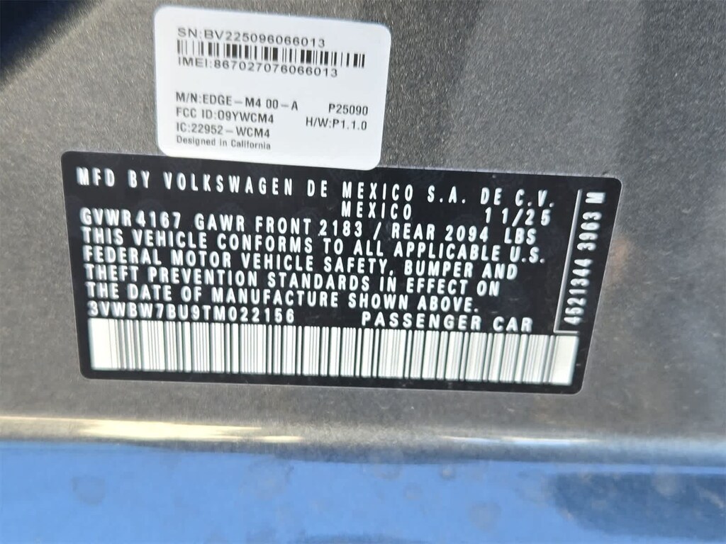 BUY WITH CONFIDENCE! WE LOVE TRADES! HASSLE FREE FINANCE PLANS FOR EVERYONE! PLEASE CALL TO ENSURE AVAILABLITY AS OUR INVENTORY CHANGES BY THE HOUR. Platinum Gray Metallic 2026 Volkswagen Jetta FWD 8-Speed Automatic with Tiptronic 1.5L I-4 DI DOHC Turbocharged 4 Speakers, 4-Wheel Disc Brakes, ABS brakes, Active Blind Spot Monitor, Air Conditioning, Alloy wheels, Auto-dimming Rear-View mirror, Automatic temperature control, Brake assist, Bumpers: body-color, Cloth Seat Trim, Delay-off headlights, Driver door bin, Driver vanity mirror, Dual front impact airbags, Dual front side impact airbags, Electronic Stability Control, Emergency communication system: VW Car-Net Safe & Secure 5-year, Exterior Parking Camera Rear, Front anti-roll bar, Front Bucket Seats, Front Center Armrest, Front dual zone A/C, Front wheel independent suspension, Fully automatic headlights, Heated door mirrors, Heated Front Seats, Heated front seats, Illuminated entry, Leather Shift Knob, Leather steering wheel, Low tire pressure warning, Occupant sensing airbag, Outside temperature display, Overhead airbag, Overhead console, Panic alarm, Passenger door bin, Passenger vanity mirror, Power door mirrors, Power steering, Power windows, Radio data system, Radio: MIB3 Composition Color with 8 Touchscreen, Rain sensing wipers, Rear anti-roll bar, Rear reading lights, Rear seat center armrest, Rear window defroster, Remote keyless entry, Speed control, Speed-sensing steering, Split folding rear seat, Steering wheel mounted audio controls, Tachometer, Telescoping steering wheel, Tilt steering wheel, Traction control, Trip computer, Variably intermittent wipers, Wheels: 17 2-Tone Machined Alloy.